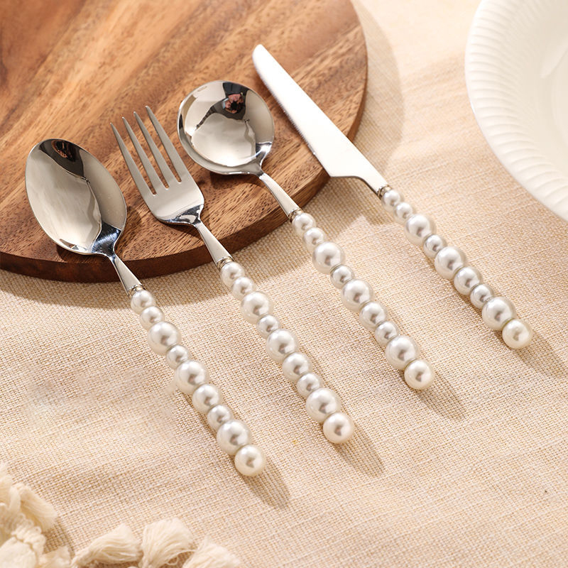 Specifications: main meal knife, dinner fork, main meal spoon, round head spoon, Pearl dinner fork round head spoon two-piece set, Pearl main meal knife fork round head spoon three-piece set, Pearl Western food tableware four-piece set