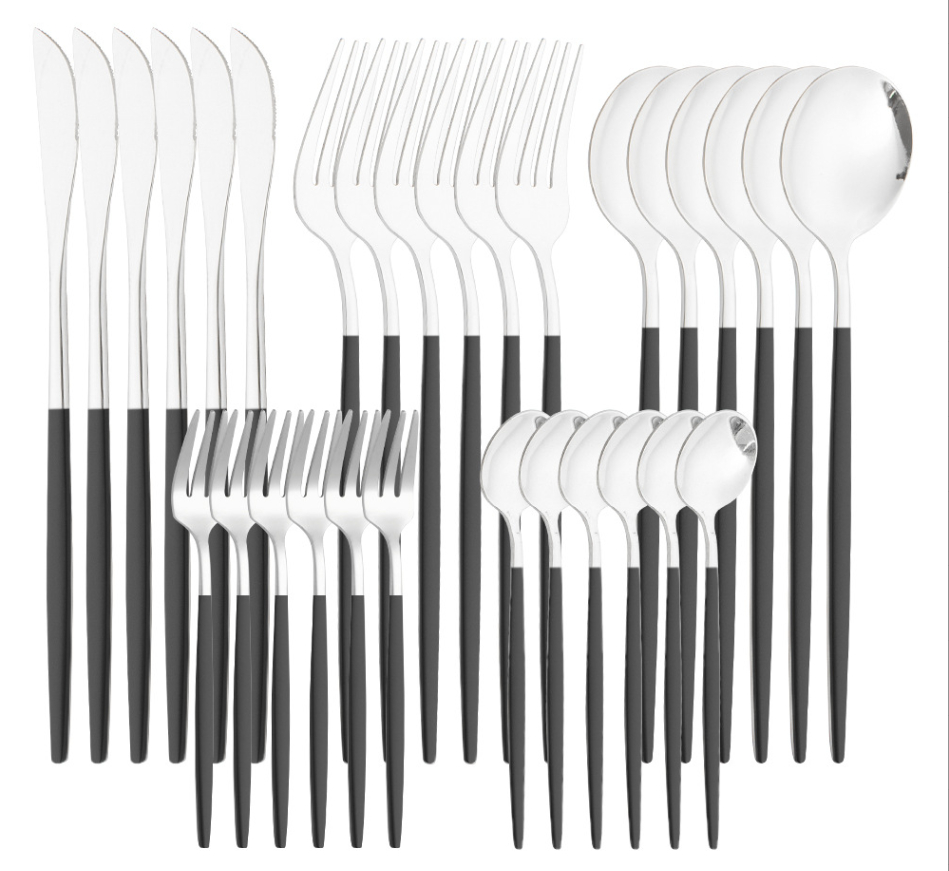 Suit list: dinner knife * 6 spoons * 6 large forks * 6 small spoons * 6 small fork * 6