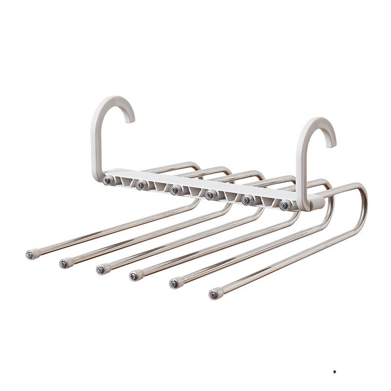 Each hanger has multiple trousers, suitable for any type of hanger, and allows clothes to be hung horizontally or vertically.