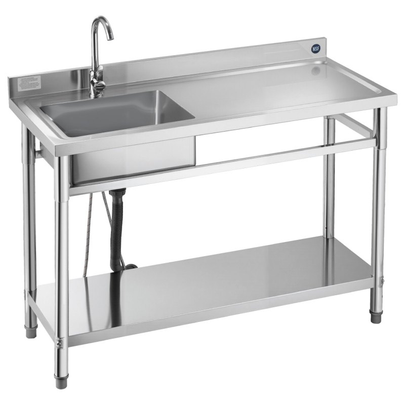 3-in-1 Multi-Functional Design: Combines a large workstation, deep sink, and adjustable bottom shelf for efficient washing, organizing, and storage. Our utility sink provides cleaning space; shelf height adjusts to 3 levels height