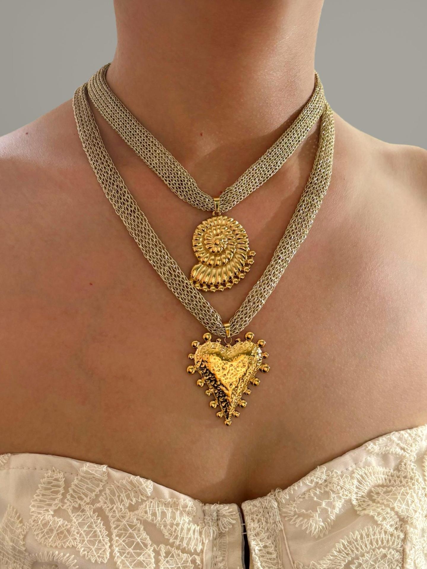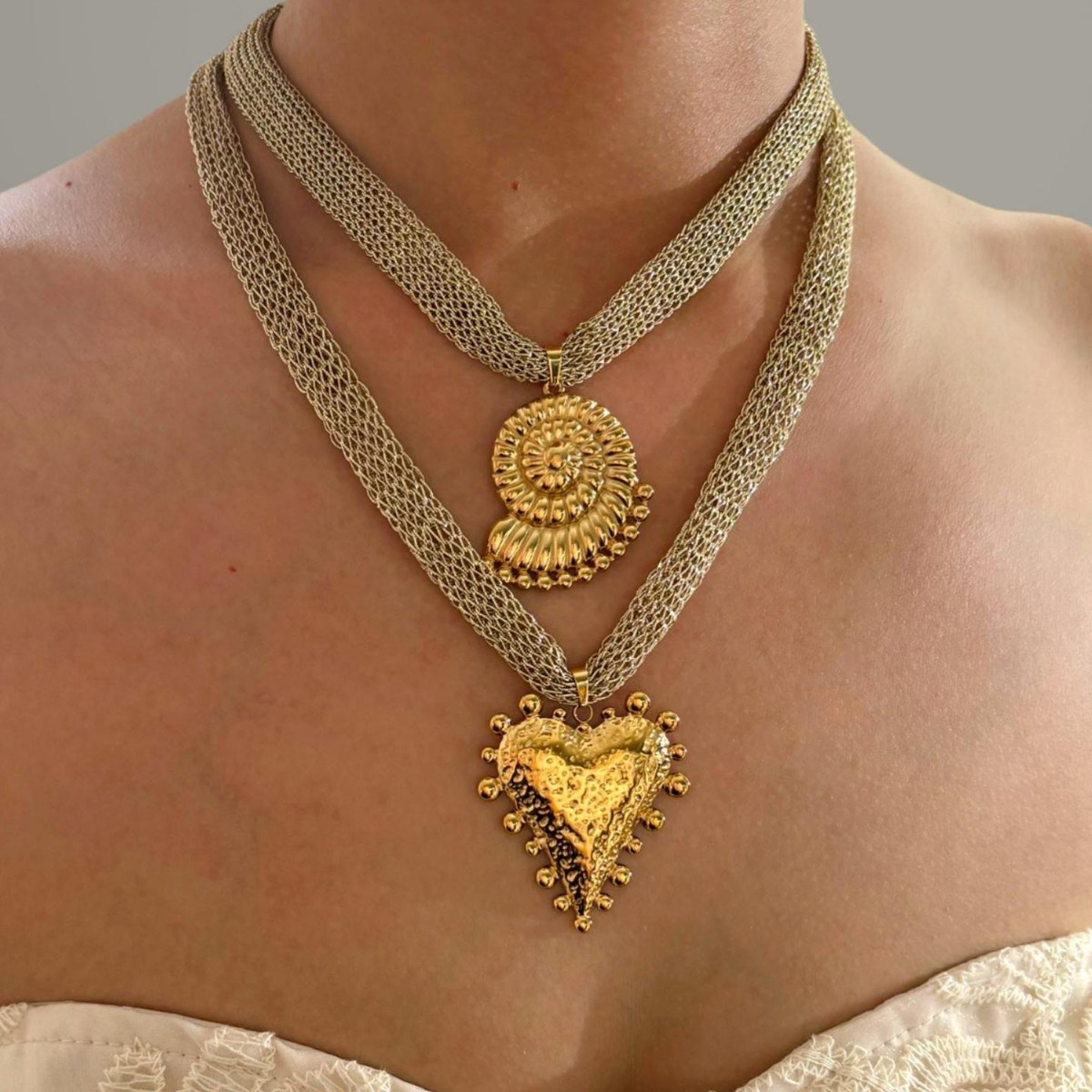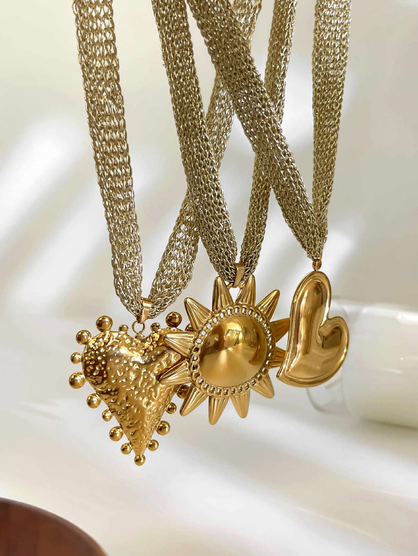 Color: Gold Sun Necklace, gold conch necklace, Gold scallop necklace, gold oblique love necklace, golden dots love necklace, golden dots love conch two-piece necklace, gold main picture oblique love scallop sun three-piece necklace