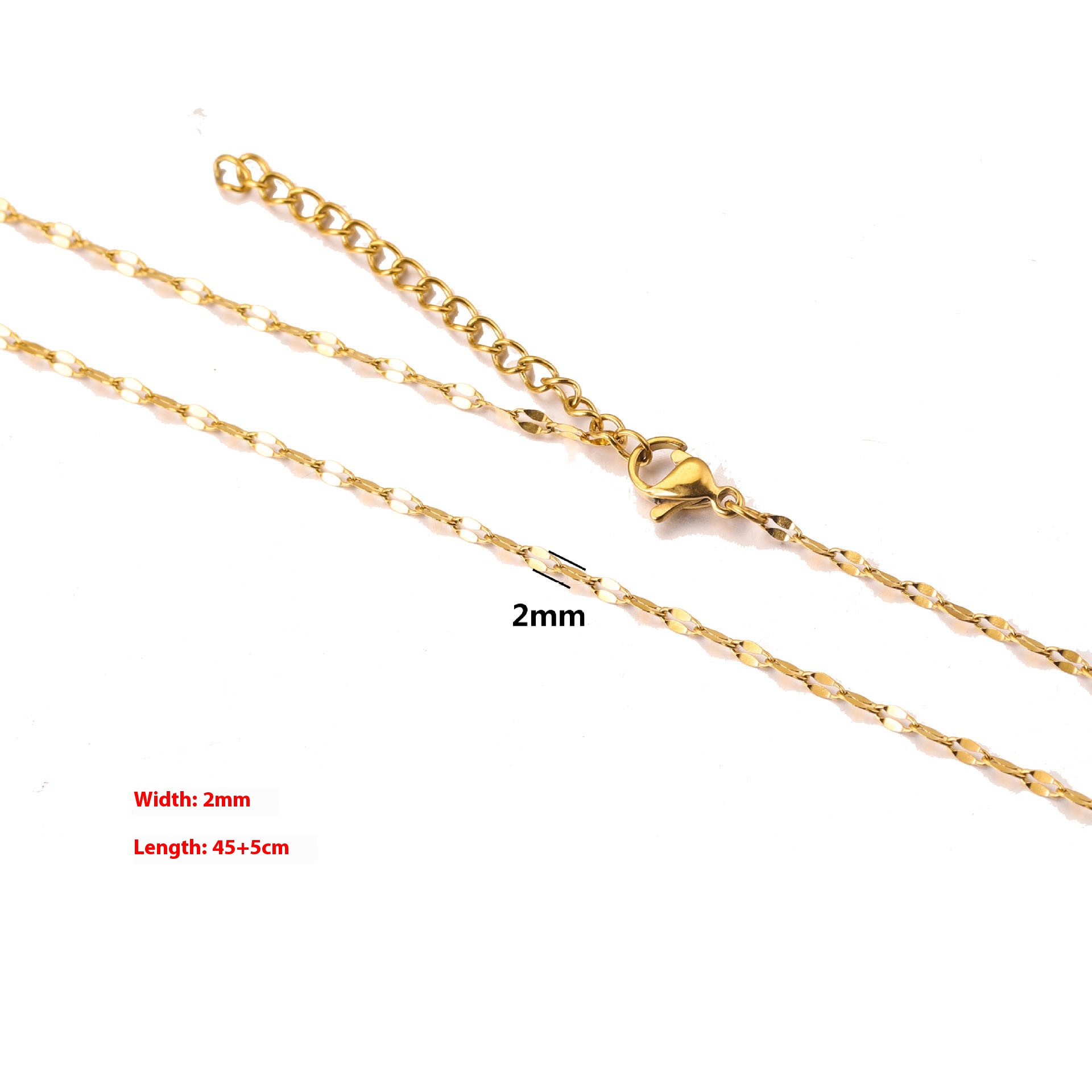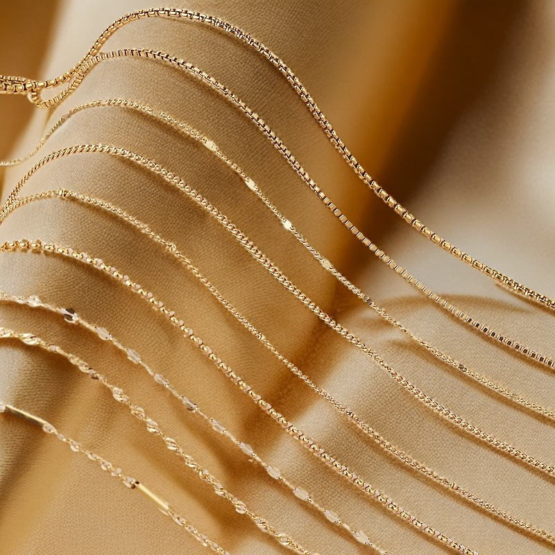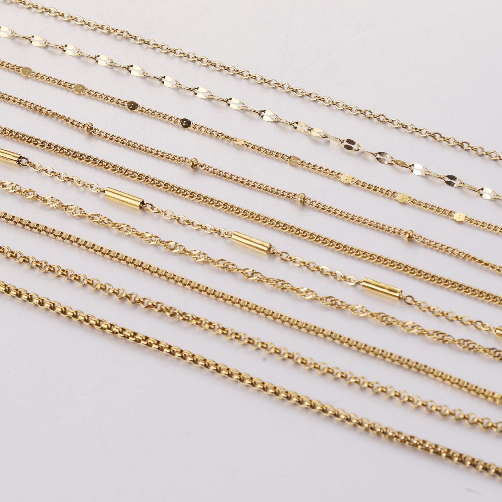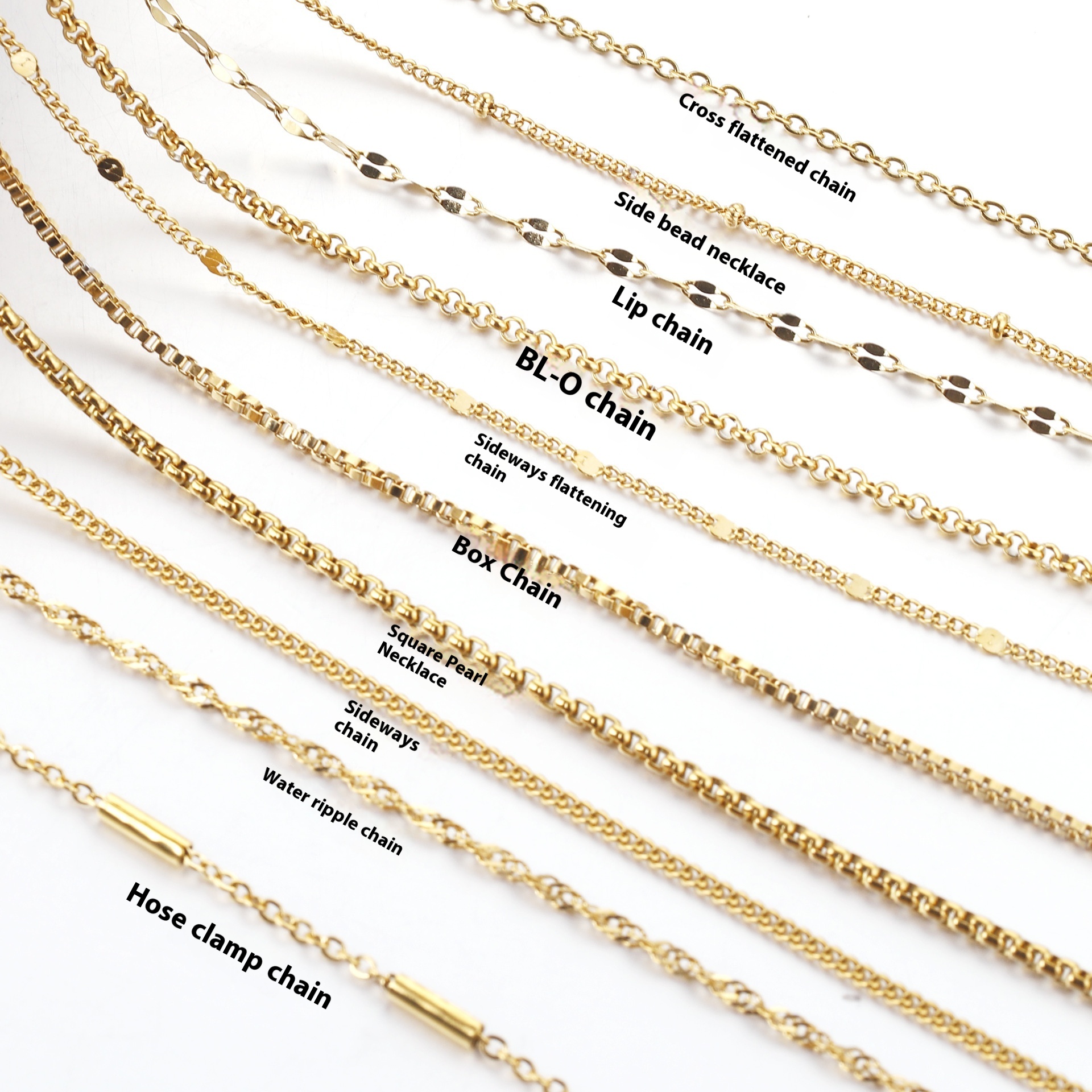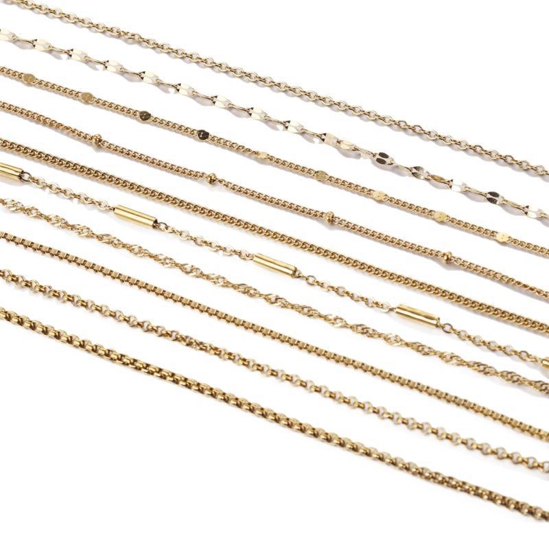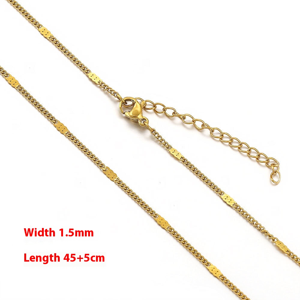 Color: cross chain-steel, cross chain-gold, curb necklace-steel, curb necklace-gold, box chain-steel, box chain-gold, water ripple-steel, water ripple-gold, side flattening-steel color, side flattening-gold, square Pearl-steel color, square Pearl-gold, BLO word chain-steel color, BLO word chain-gold, clip tube chain-steel color, clip tube chain-gold, clip beads necklace-steel color, clip beads necklace-gold, lip chain-steel color, lip chain-Gold