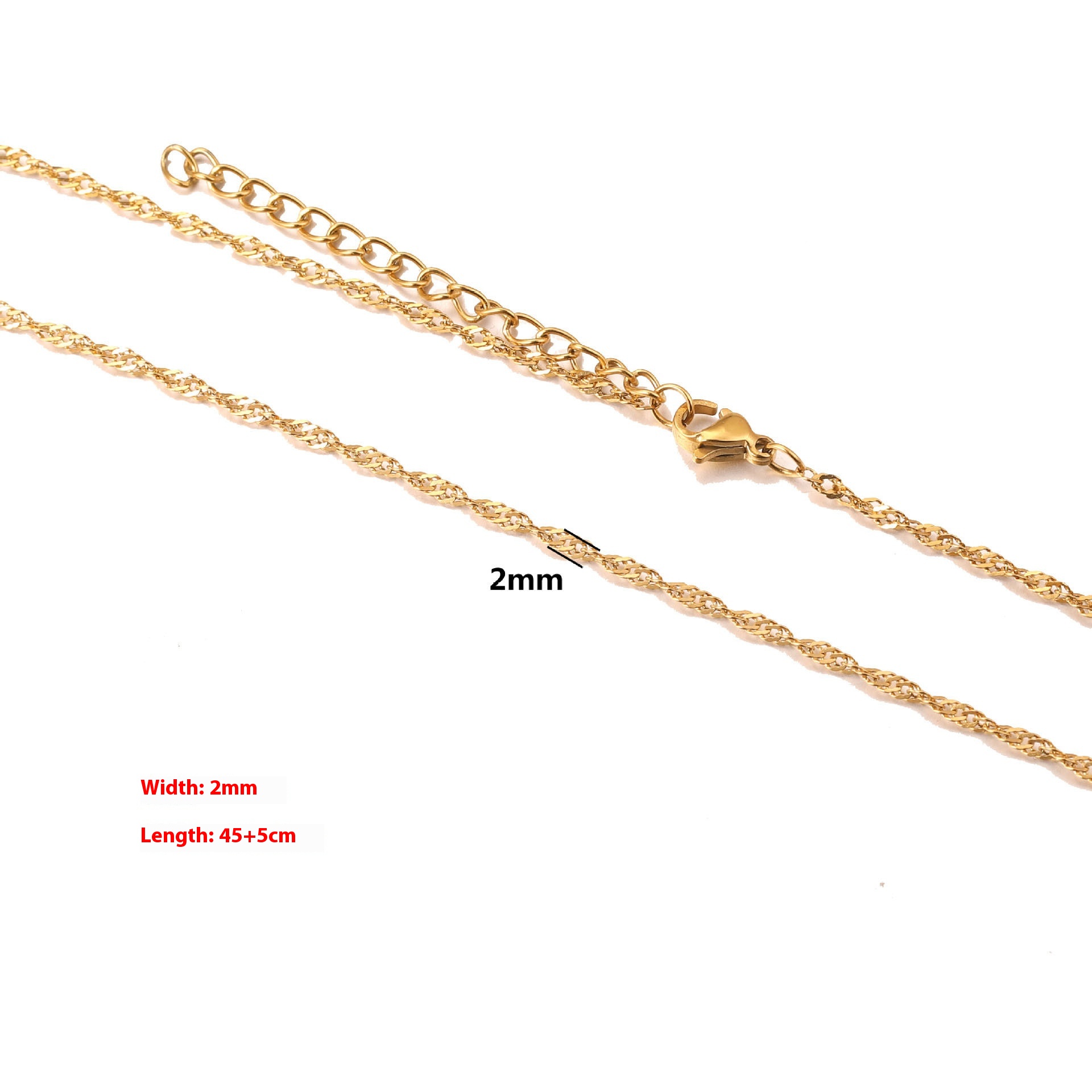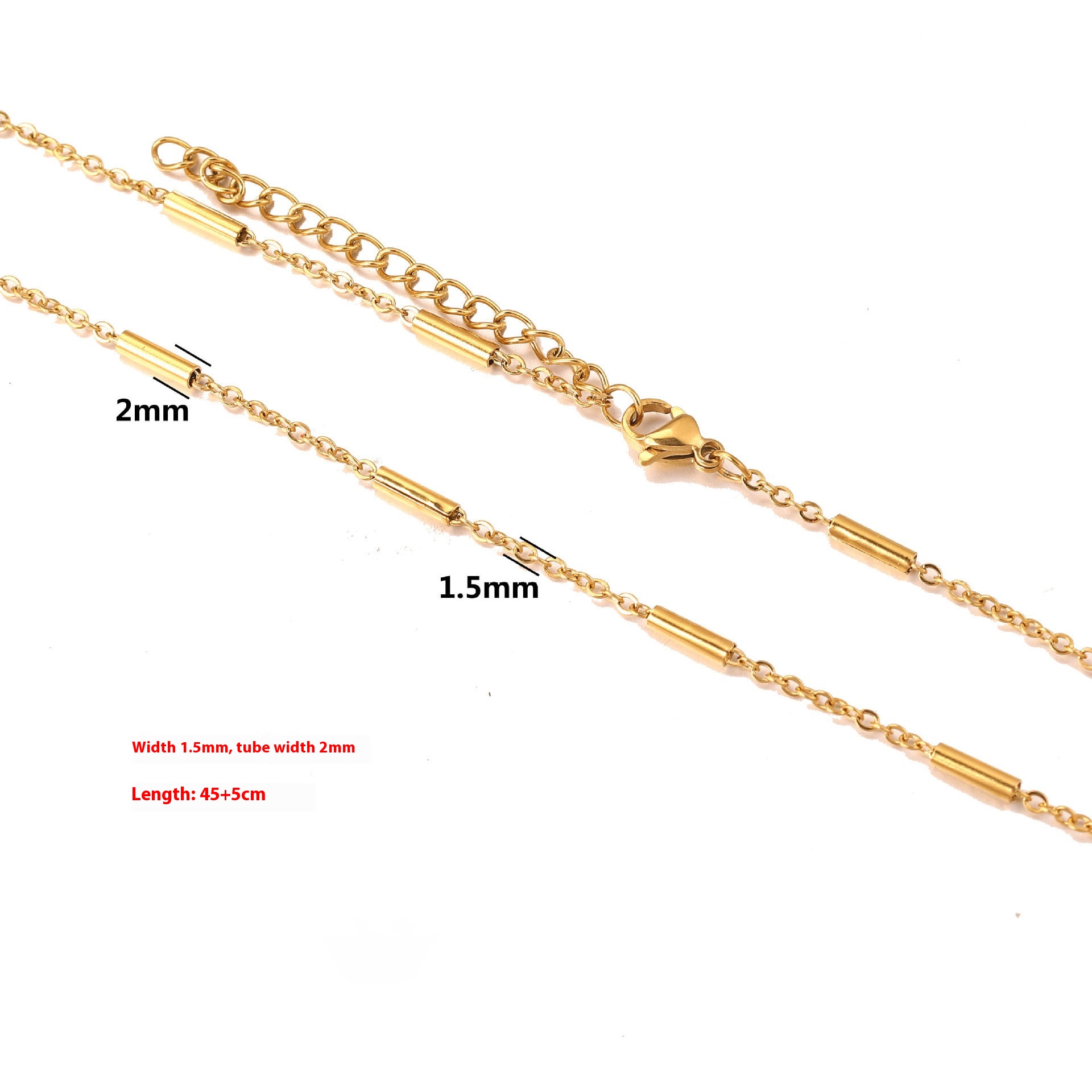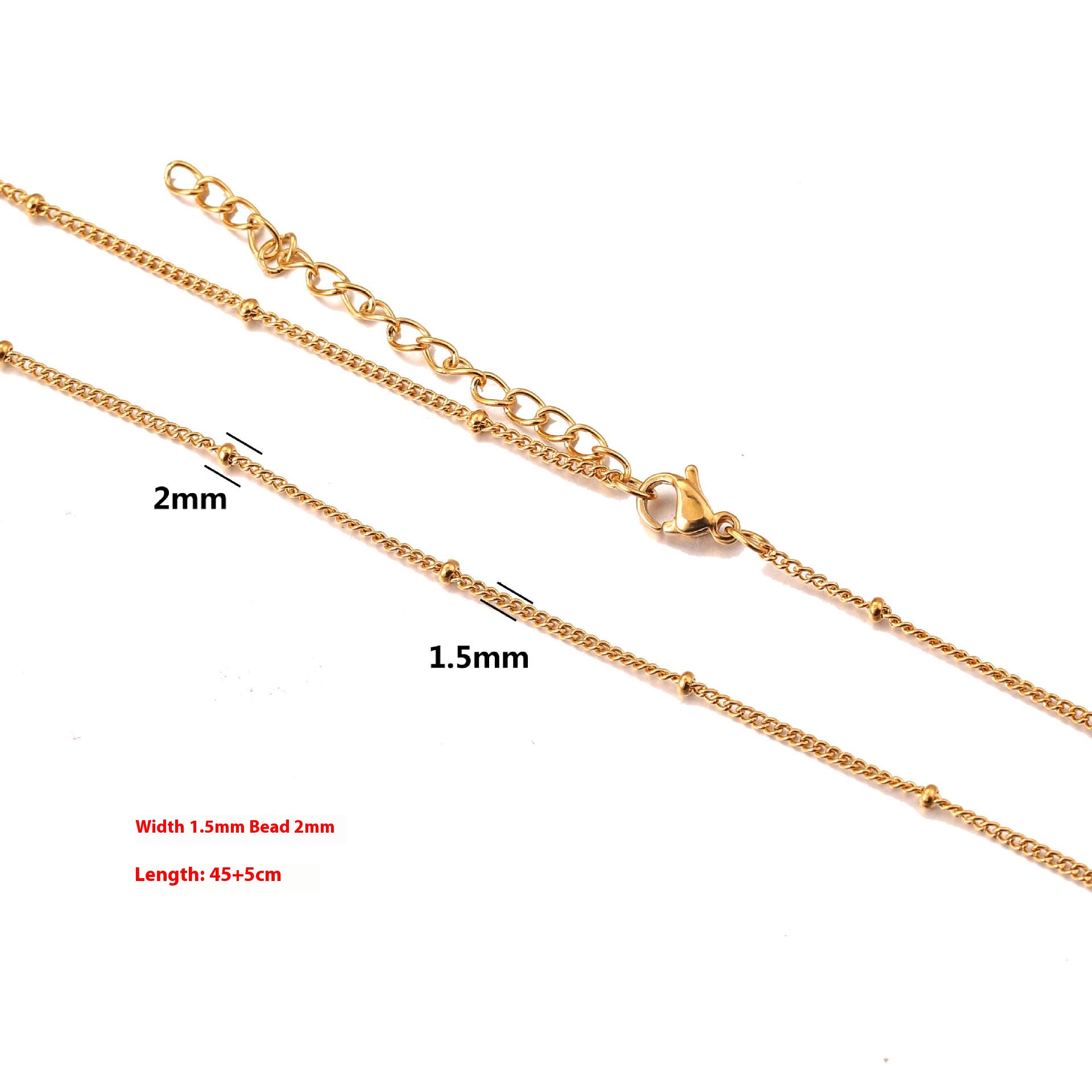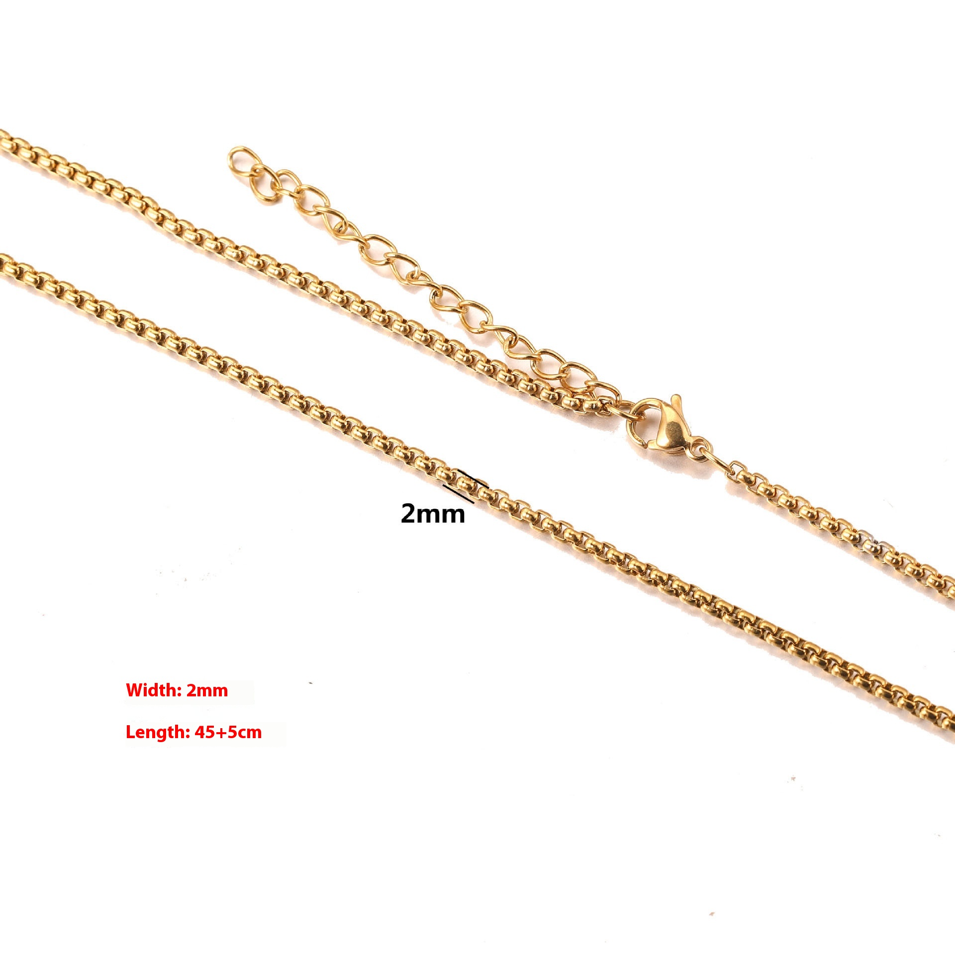Color: cross chain-steel, cross chain-gold, curb necklace-steel, curb necklace-gold, box chain-steel, box chain-gold, water ripple-steel, water ripple-gold, side flattening-steel color, side flattening-gold, square Pearl-steel color, square Pearl-gold, BLO word chain-steel color, BLO word chain-gold, clip tube chain-steel color, clip tube chain-gold, clip beads necklace-steel color, clip beads necklace-gold, lip chain-steel color, lip chain-Gold