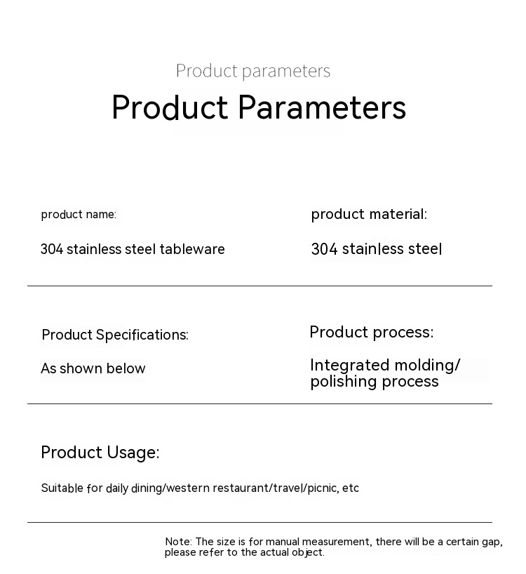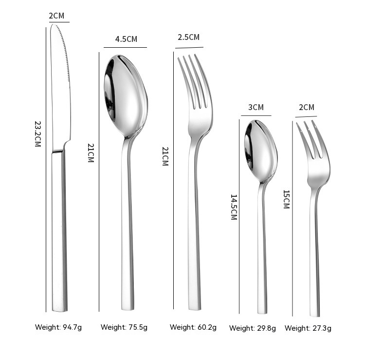 Specifications: knife, fork, spoon, tea spoon, cake fork