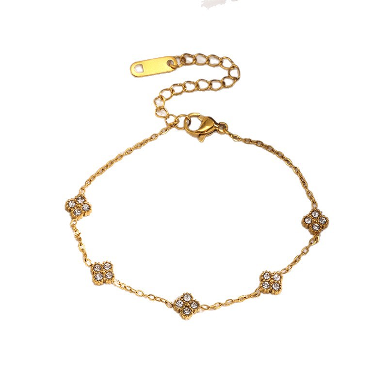 Color: 70123 Four-Leaf Clover Diamond Bracelet – Gold