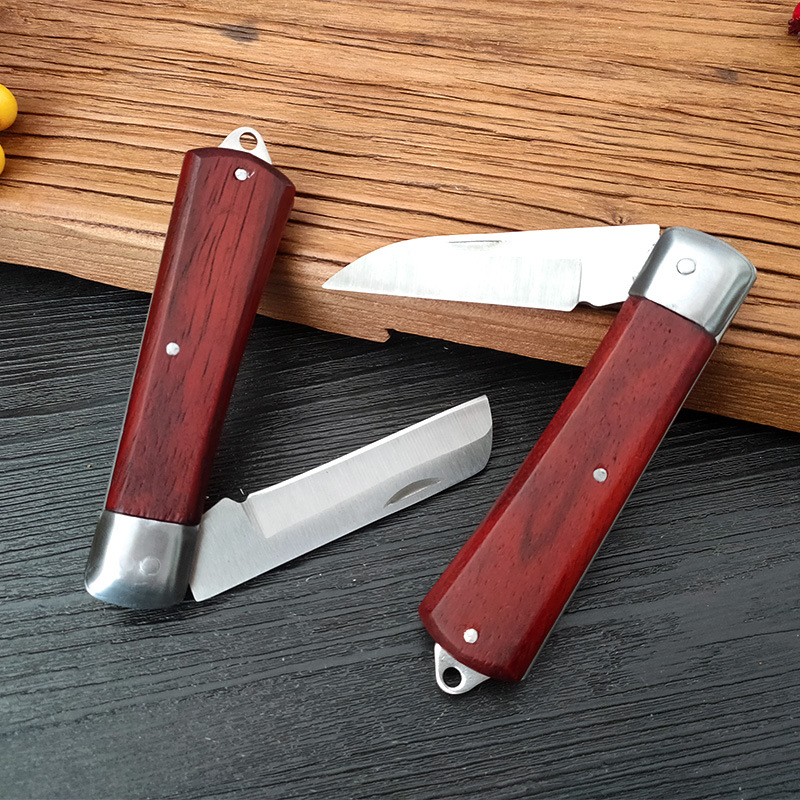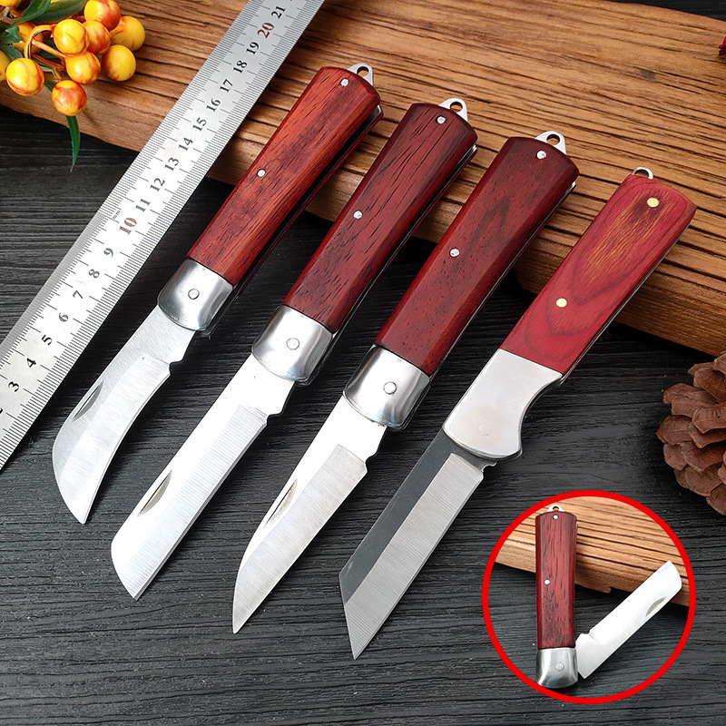 Stainless Steel Wooden Handle Pruning Grafting Garden Fruit Tree Cutting Tool Outdoor Foldable And Portable Fruit Knife