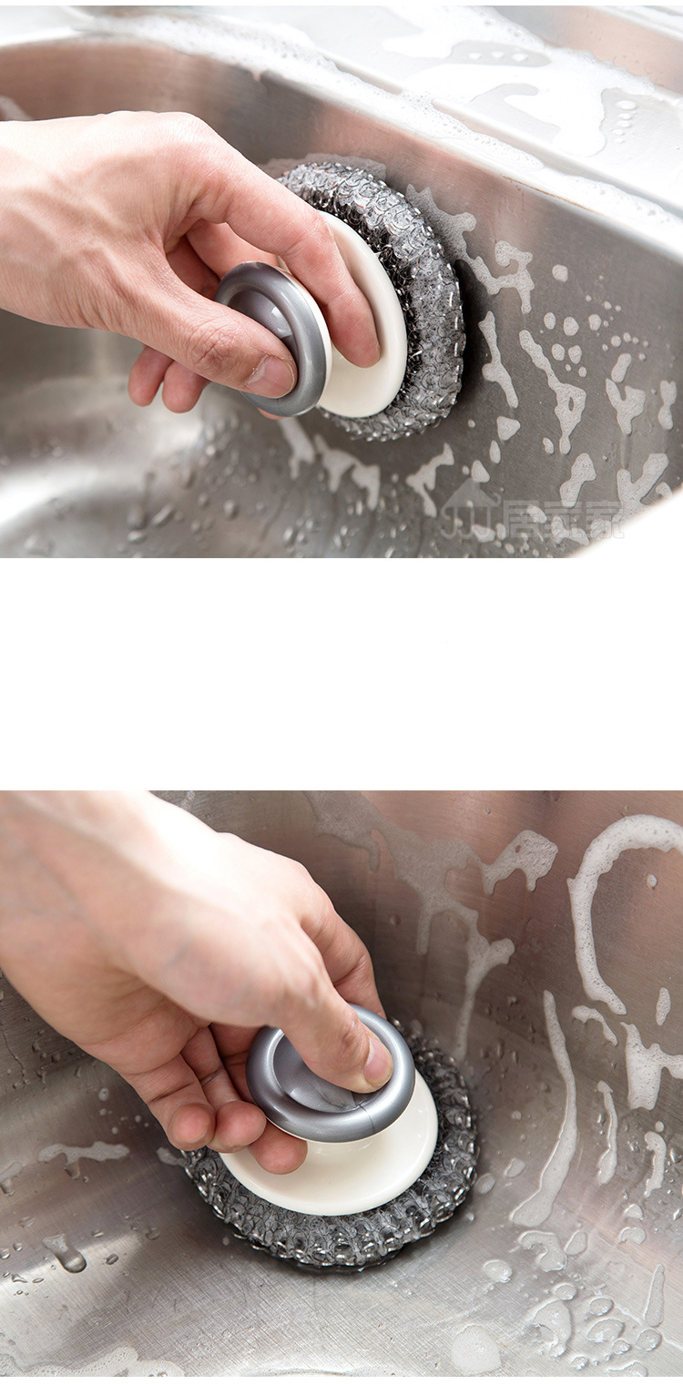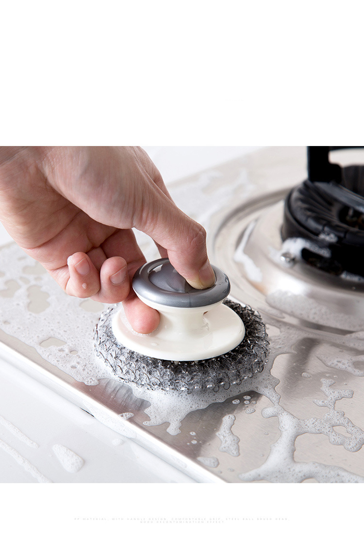 Ergonomic Design for Comfort: The convex-top handle of these pot scrubbers is ergonomically designed for a comfortable grip, reducing hand fatigue and protecting your hands from harsh cleaning agents.