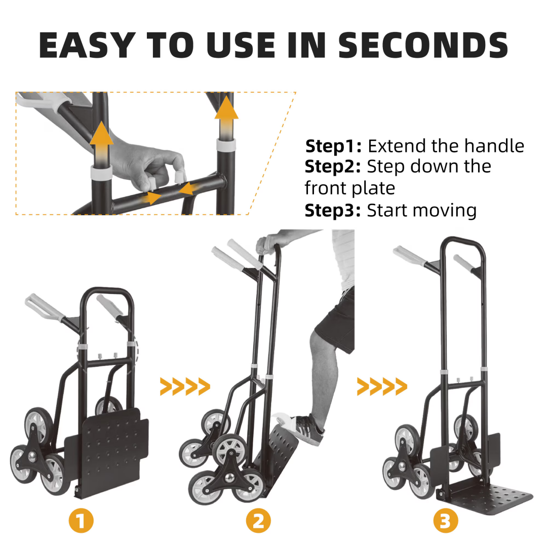 【High Load Capacity】: Capable of supporting up to 330 lbs on both flat surfaces and stairs, this cart handles heavy loads with reliability and strength.