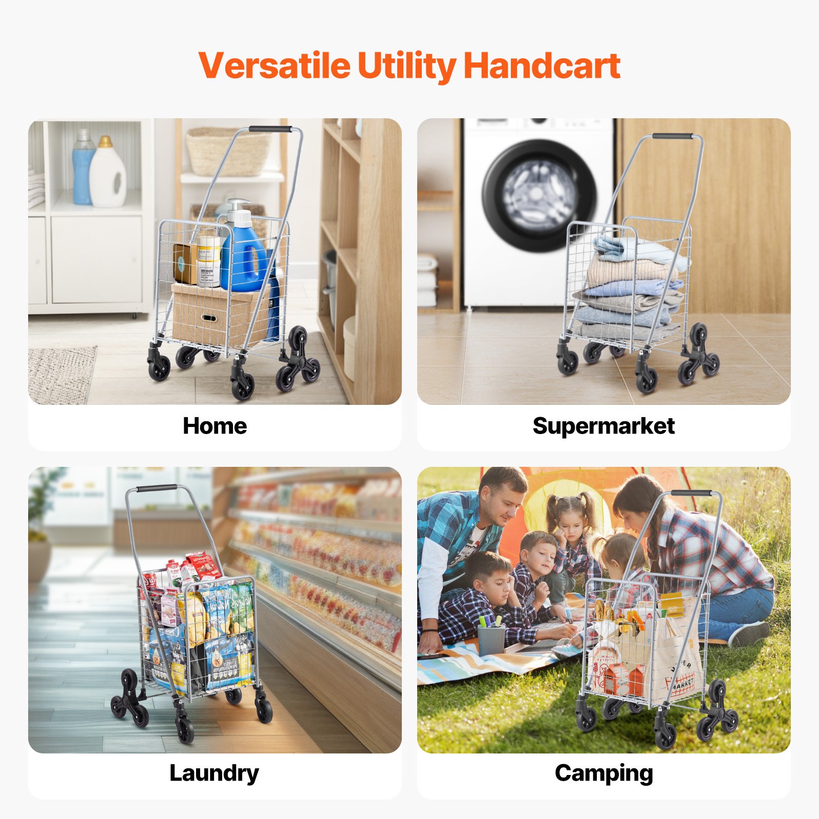Comfortable Loop Handle: Our stair climbing shopping cart's ergonomic loop handle wrapped in a plastic grip makes pushing a breeze. It's perfect for seniors or shoppers on the go without a car. Box-moving just got a whole lot simpler with our rolling wonder.