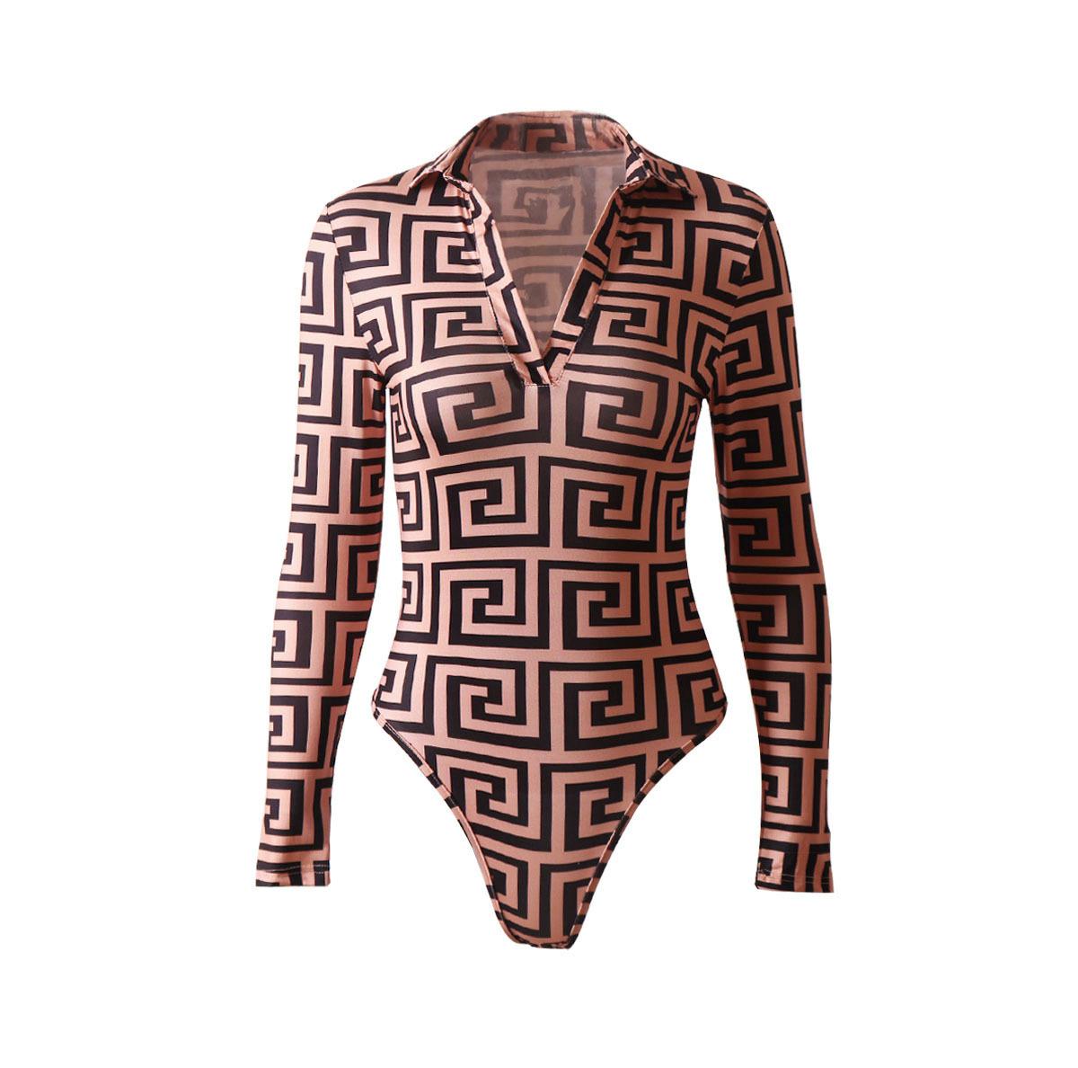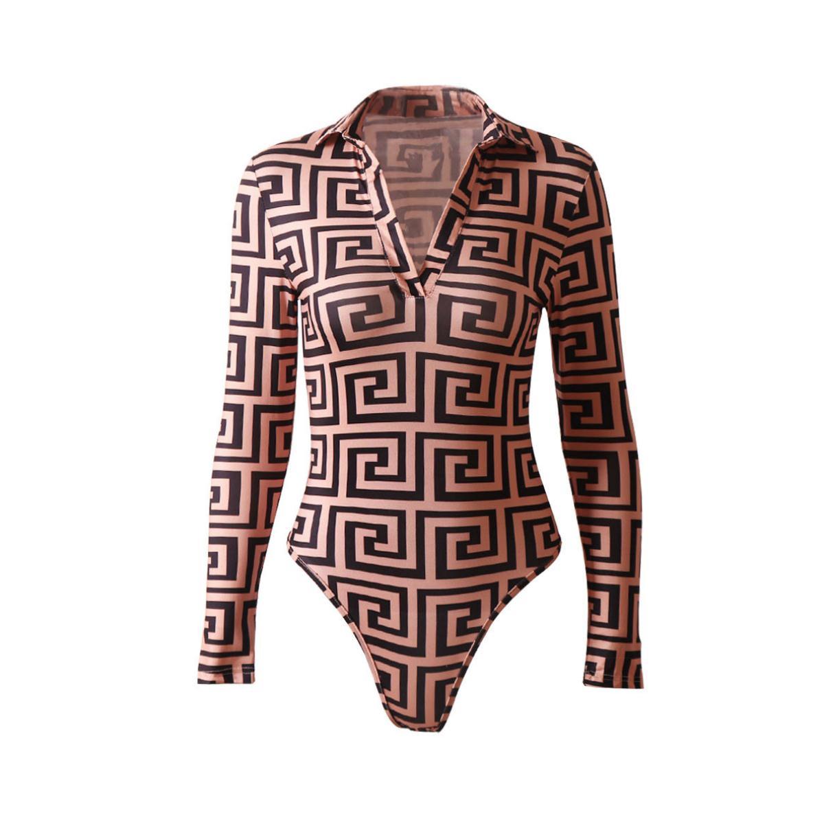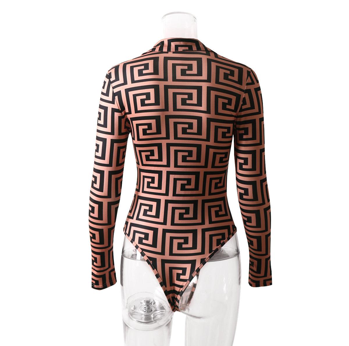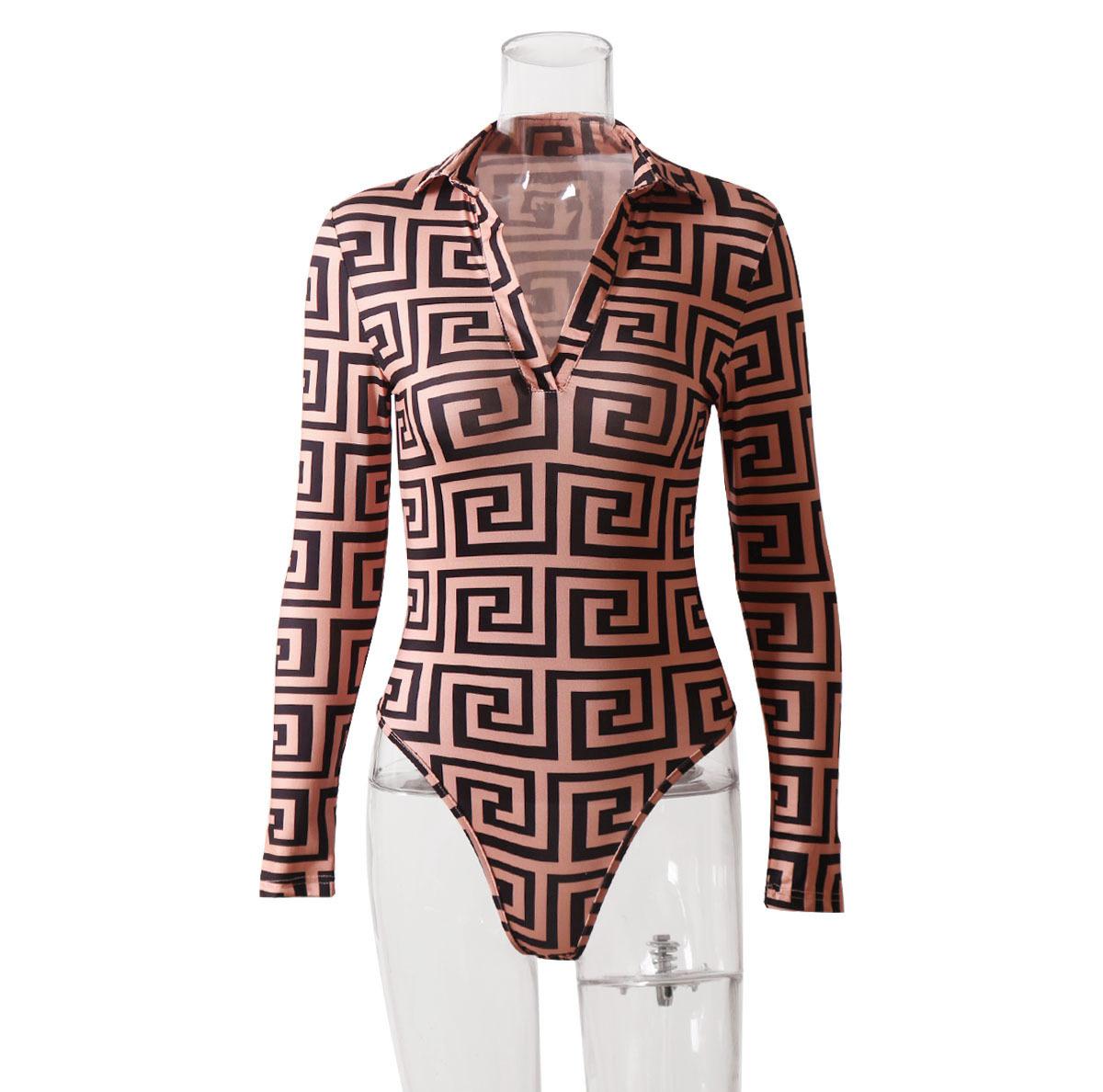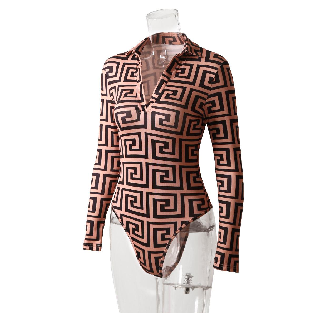Stand-alone Long-sleeved V-neck Printed Jumpsuit Autumn