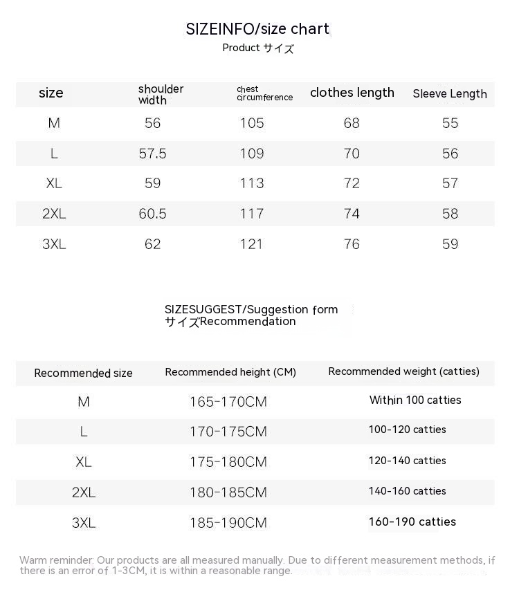 1. Asian sizes are 1 to 2 sizes smaller than European and American people. Choose the larger size if your size between two sizes. Please allow 2-3cm differences due to manual measurement. 2. Please check the size chart carefully before you buy the item, if you don't know how to choose size, please contact our customer service. 3.As you know, the different computers display colors differently, the color of the actual item may vary slightly from the following images.