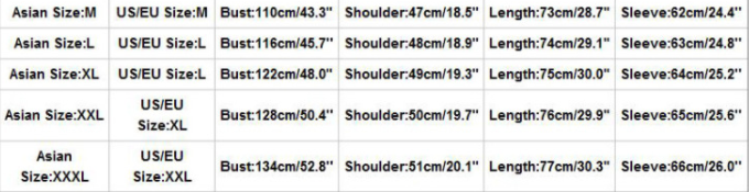 Size: M, L, XL, XXL, XXXL