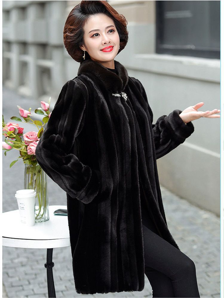 Stand-up Collar Thick Imitated Mink Coat Winter