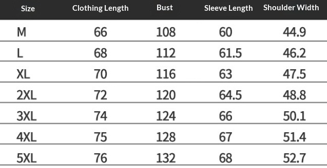 Sizes: M, L, XL, 2XL, 3XL, 4XL, 5XL