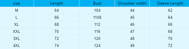 Size: M, L, XL, XXL, XXXL, XXXXL