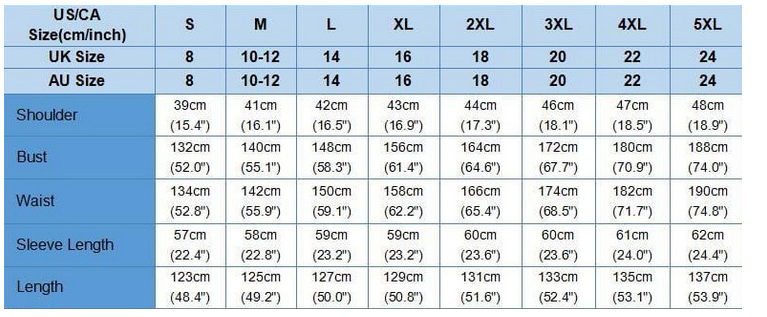 2. Please check the size chart carefully before you buy the item, if you don't know how to choose size, please contact our customer service.