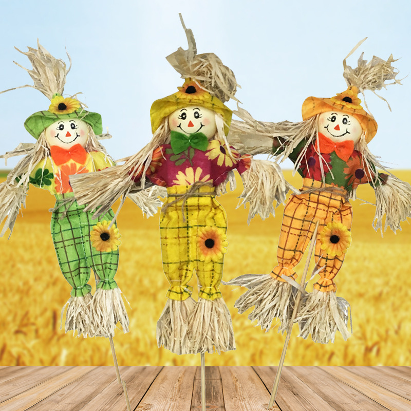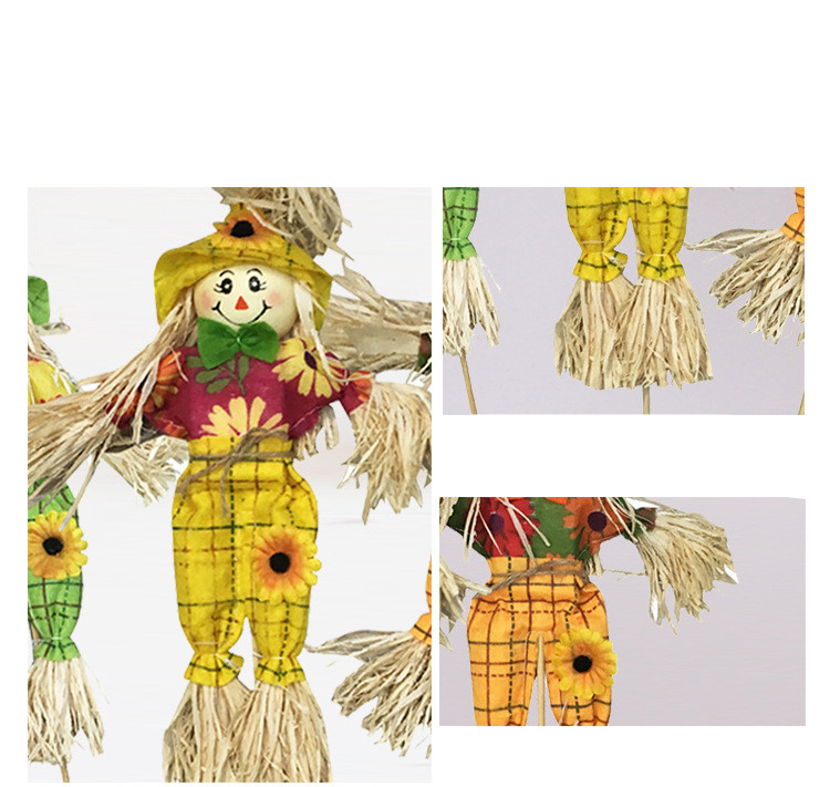 Material: straw, clothWeight: 15gCraft: ManualSize: 40cm Scarecrow shipped randomlyQuantity: 3pcs