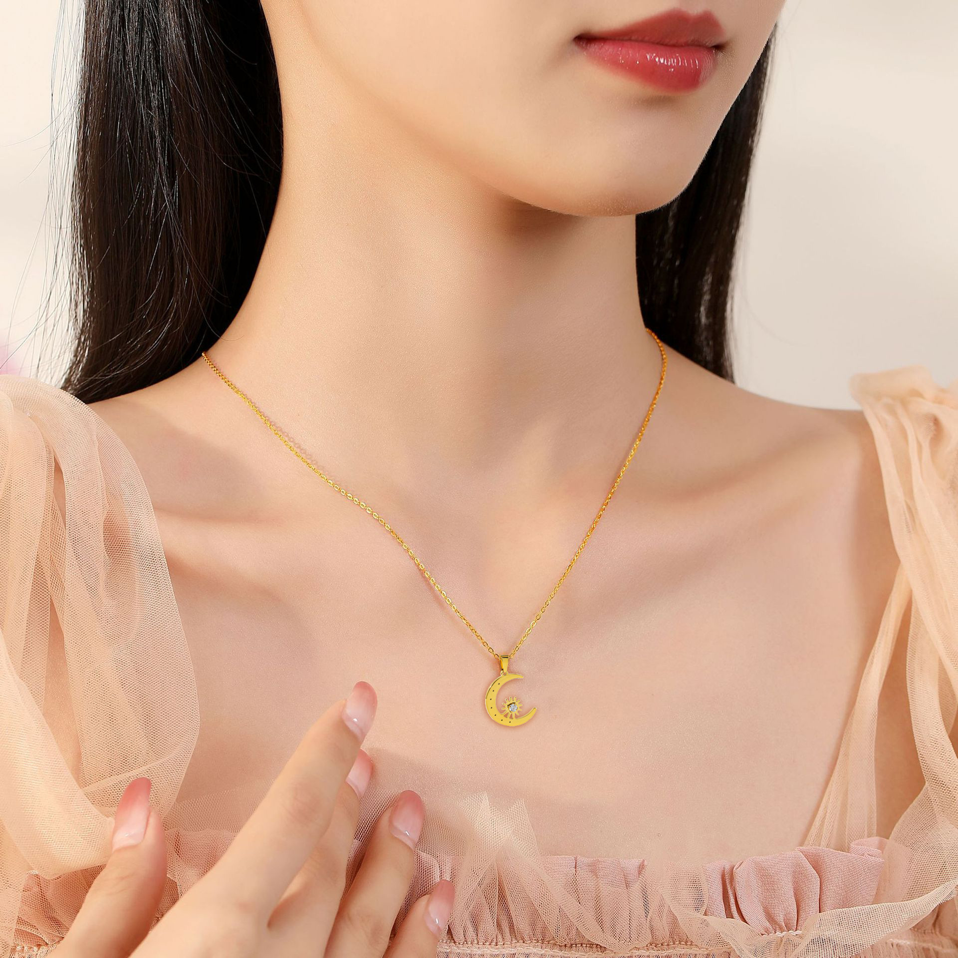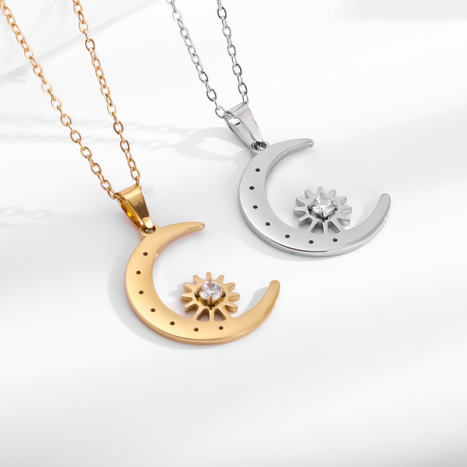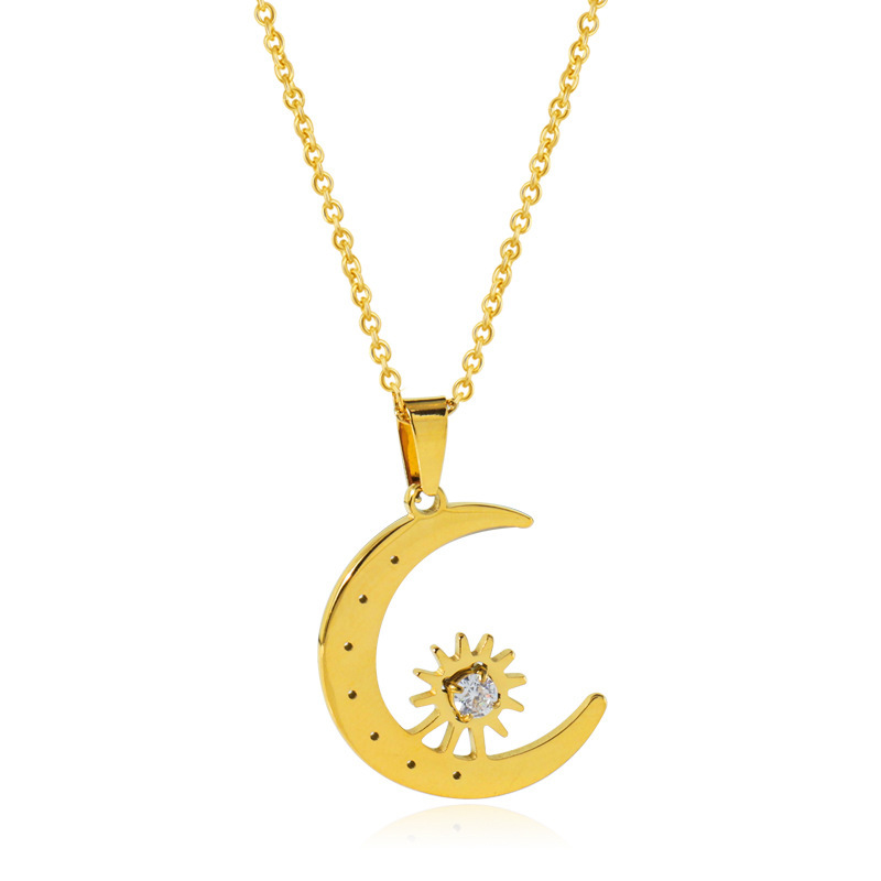 Color: N0327 steel color star and moon pendant, N0327G gold star and moon pendant