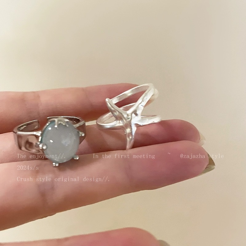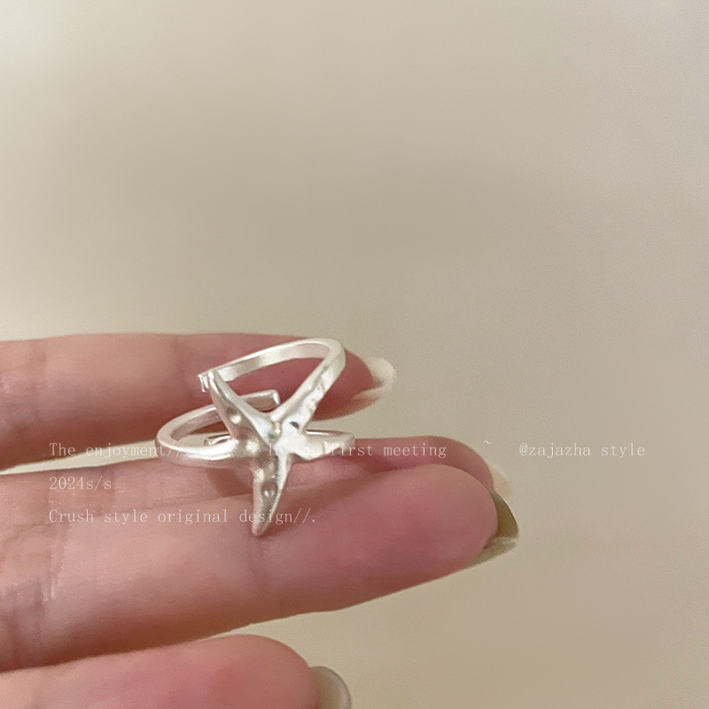 Starfish Bead Adjustable Open Ring For Women, Niche High-End Literary Retro Elegant Index Finger Jewelry