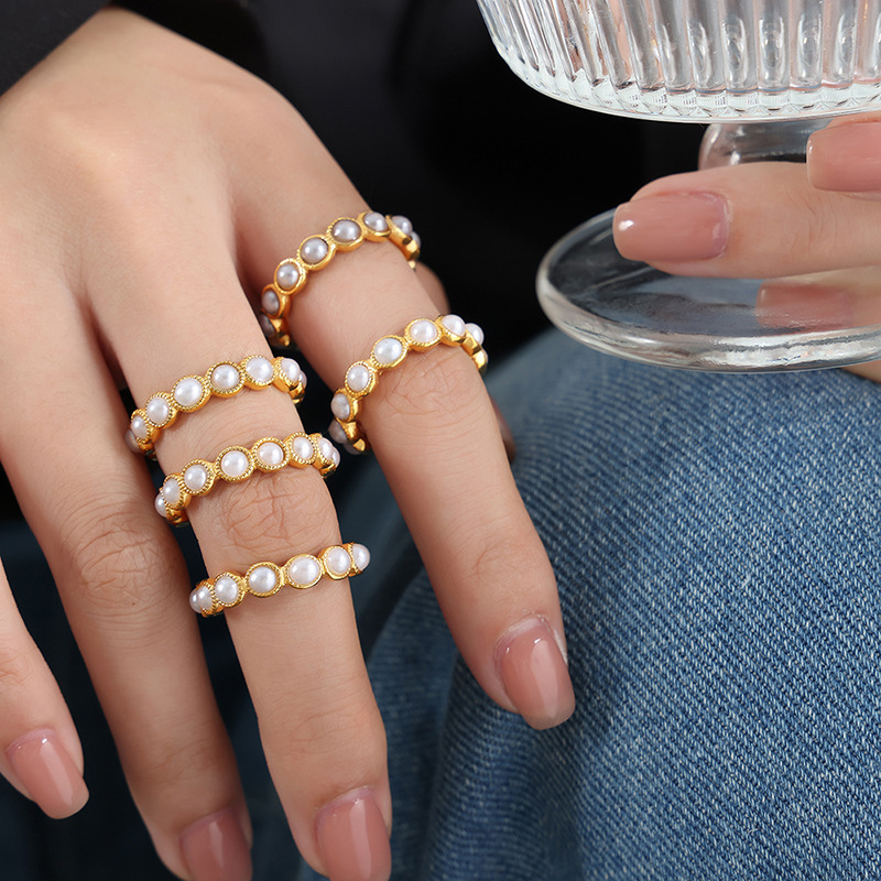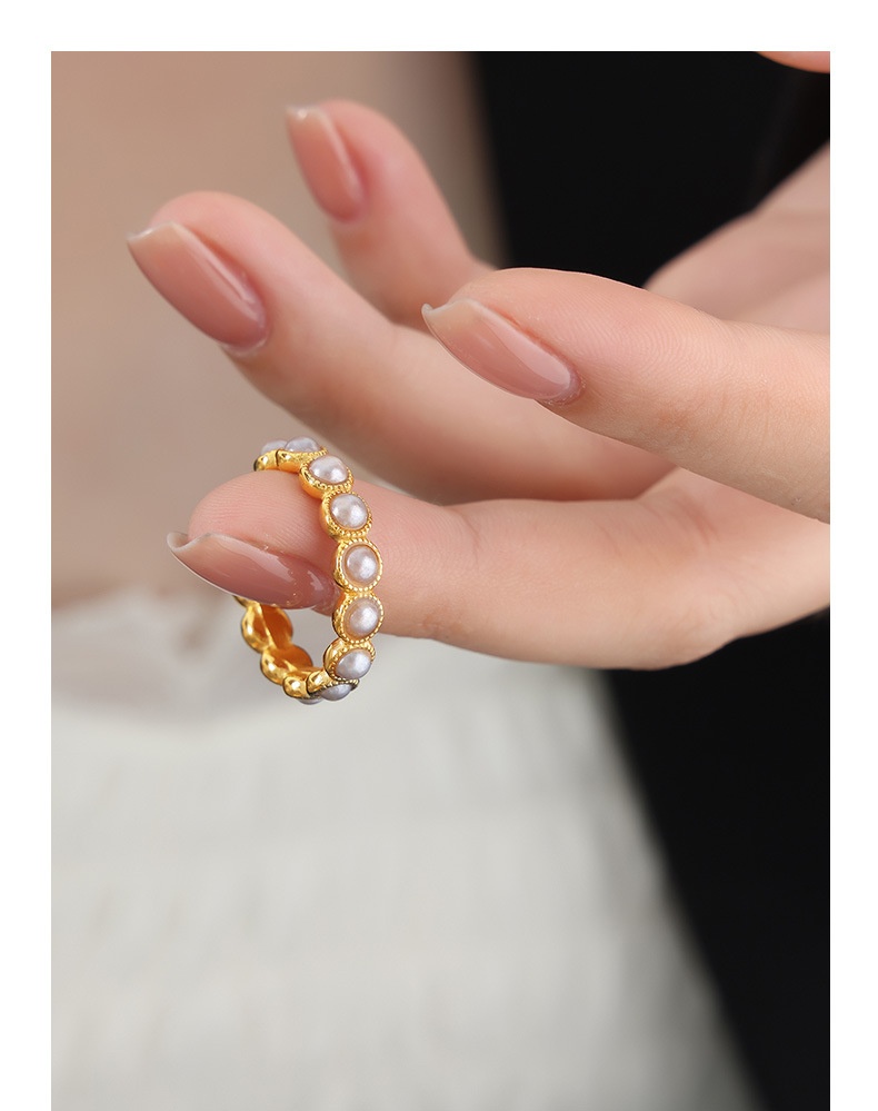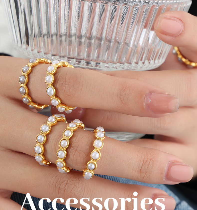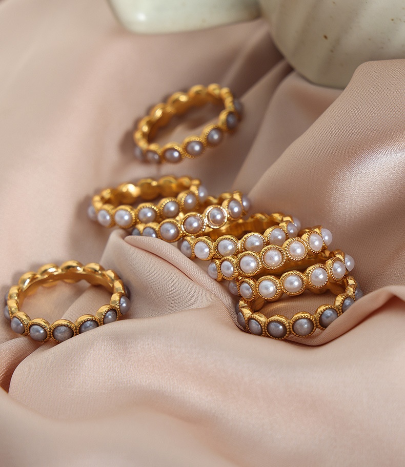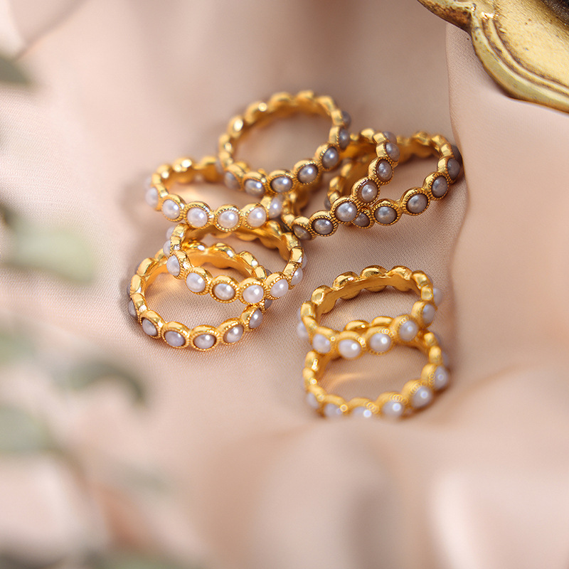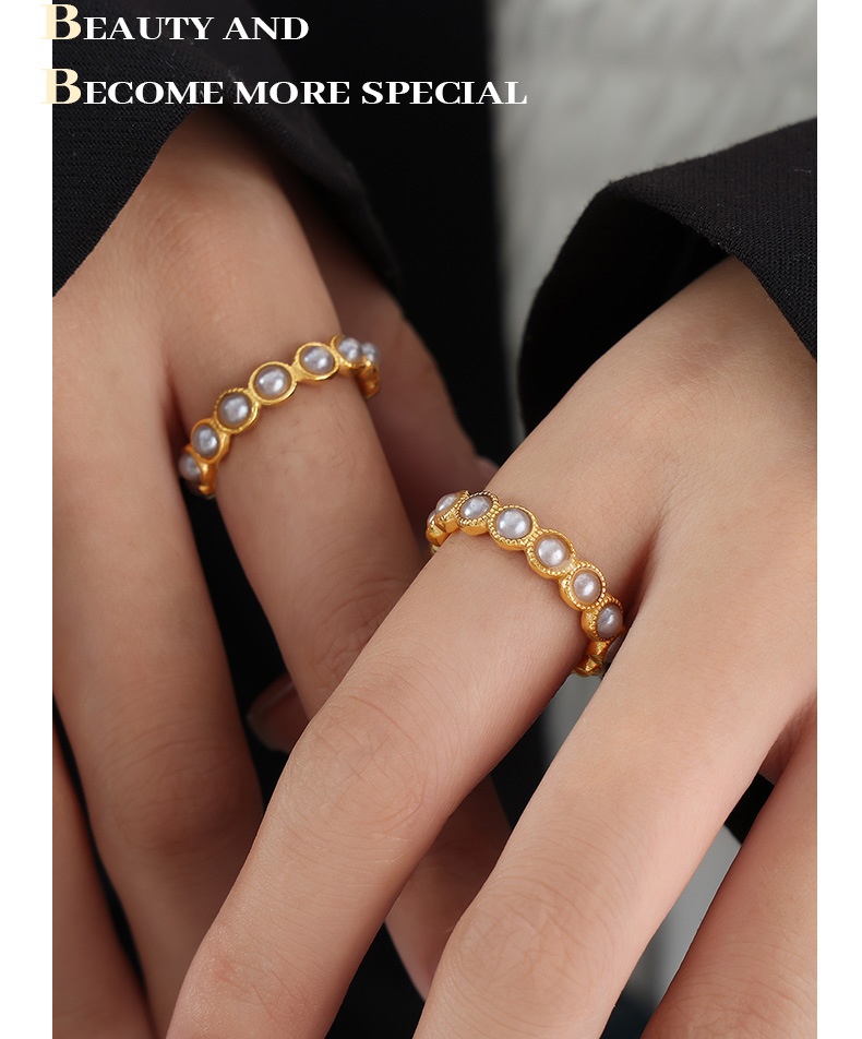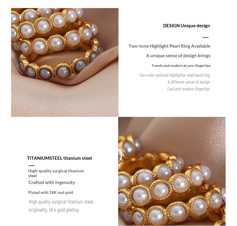 Color: A523 — Gold-Plated White Shell Pearl Ring, A523 — Gold-Plated Gray Shell Pearl Ring