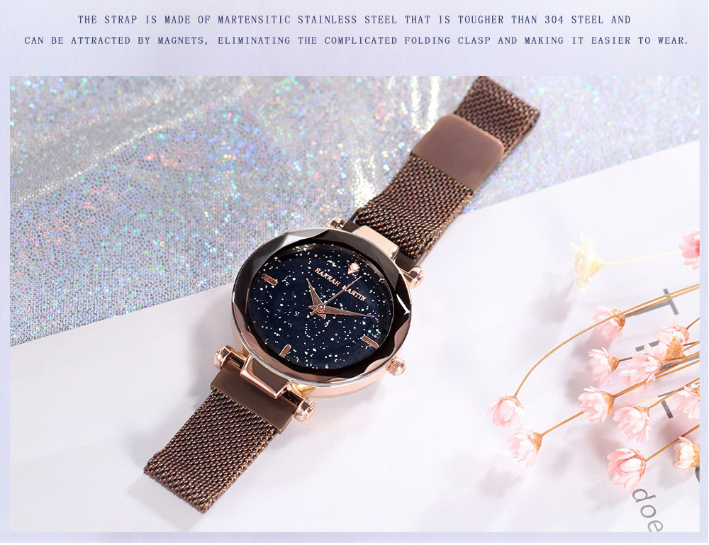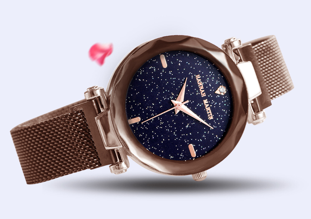 This is a new wave of Milan magnets with a vibrating mesh. The buckle is set with a magnet, which saves the cumbersome procedure of wearing a watch buckle strap. It is a one-stop adsorption, lazy design, and a second watch!