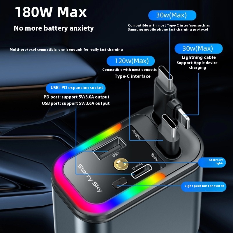 Model: One to three car charger, LC-039 car charger - starry sky light, LC-040 car charger - ambient light+Bluetooth