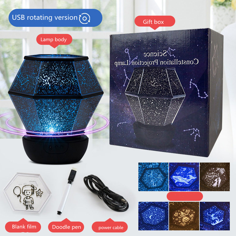 Light color: plug-in conventional-7 patterns + 3 color light non-rotating + color box, plug-in rotation-7 patterns + 3 color light rotation + color box, charging remote control music box-7 patterns + 5 color light + 18 music + gift box, charging remote Bluetooth -7 patterns + 5 colors + 20 music + gift box