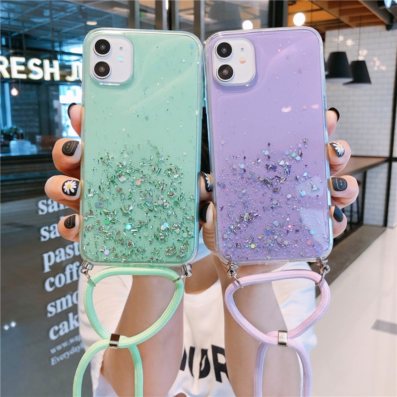 Bling Glitter Stars Sequins Cord Chain Lanyard Phone Case For iPhone 11 Pro XS Max 12 MiNi XR X 6S 7 8 plus for samsung S8 S9