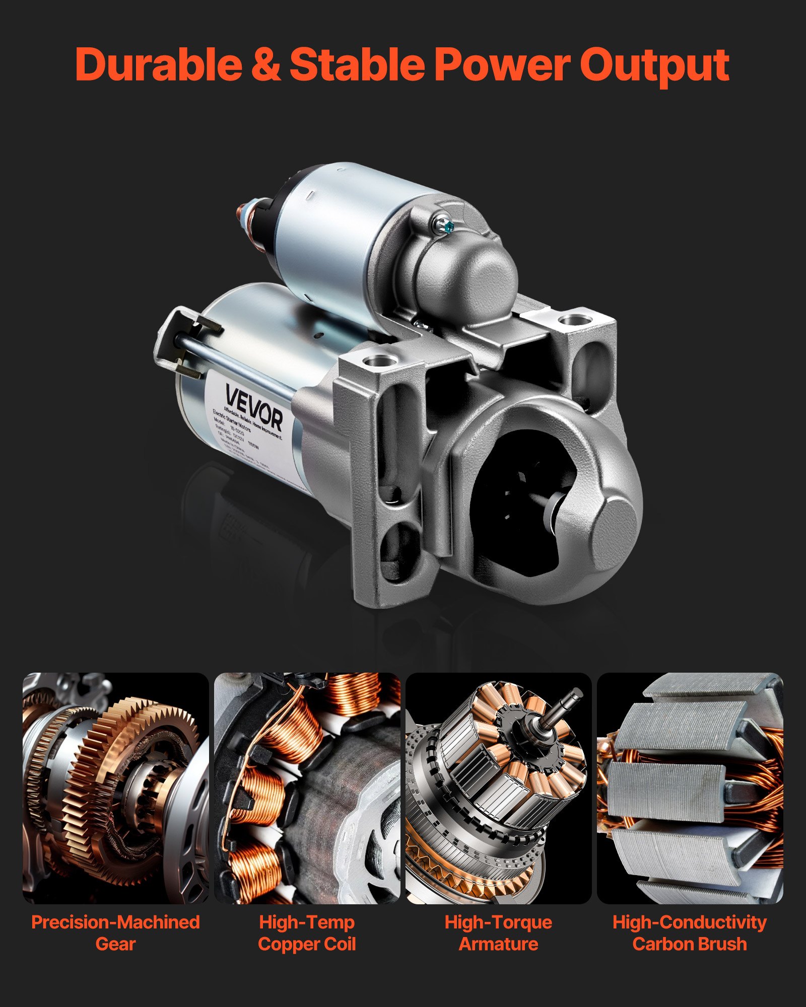 OEM Starter Specifications: Protection Rating: IP54; Voltage: DC 12V; Rated Power: 1100W; Max Current: 174A; Rotation Direction: CW (clockwise); Gear Teeth Count: 9T