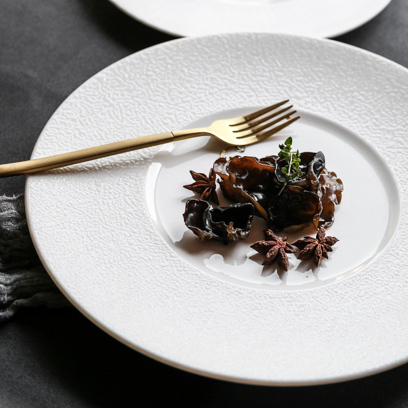 Color: water wave texture 12 inches 31cm, brushed texture 12 inches 31cm, snowflake wave dots 12 inches 31cm, cream pattern 12 inches 31cm, reticulated white large flat plate 31.4cm, irregular flake white large flat plate 31.4cm