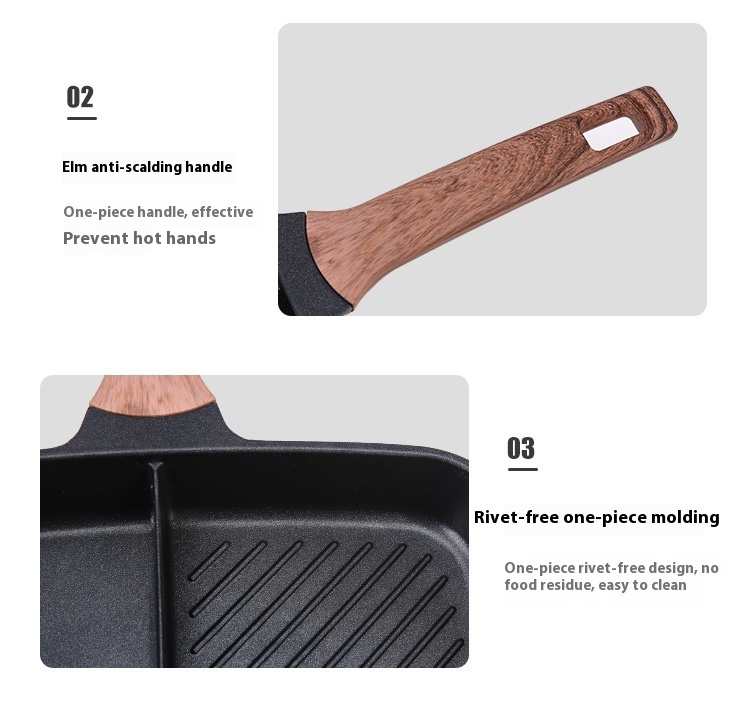 Product information:Color: Three-grid frying pan Material: Aluminum Pot bottom material: Composite multi-layer bottom Function: non-stick pan