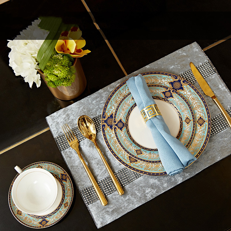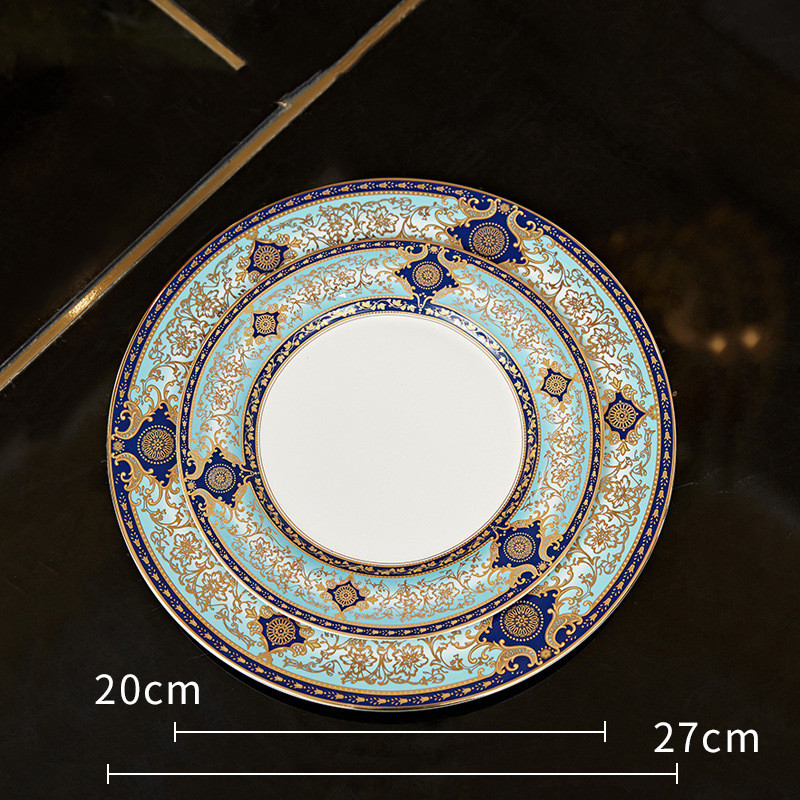 A4 precious gold blue ceramic dinner plate 2 two-piece set,