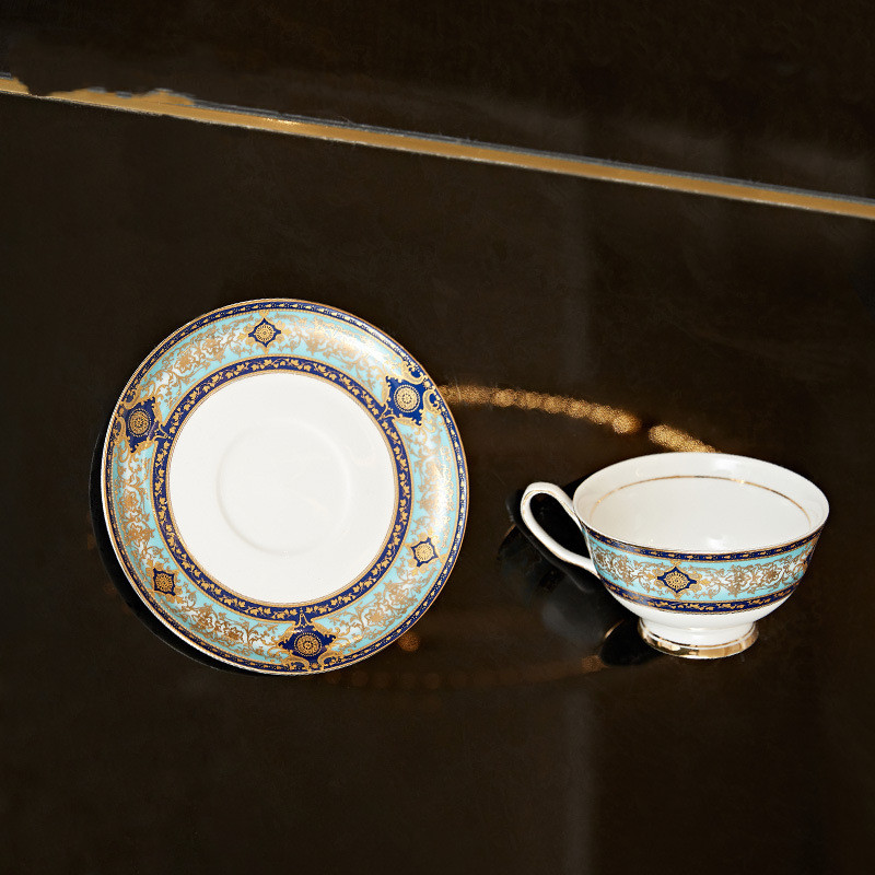 Cup and saucer: 15cm in length, 15cm in width and 2cm in height