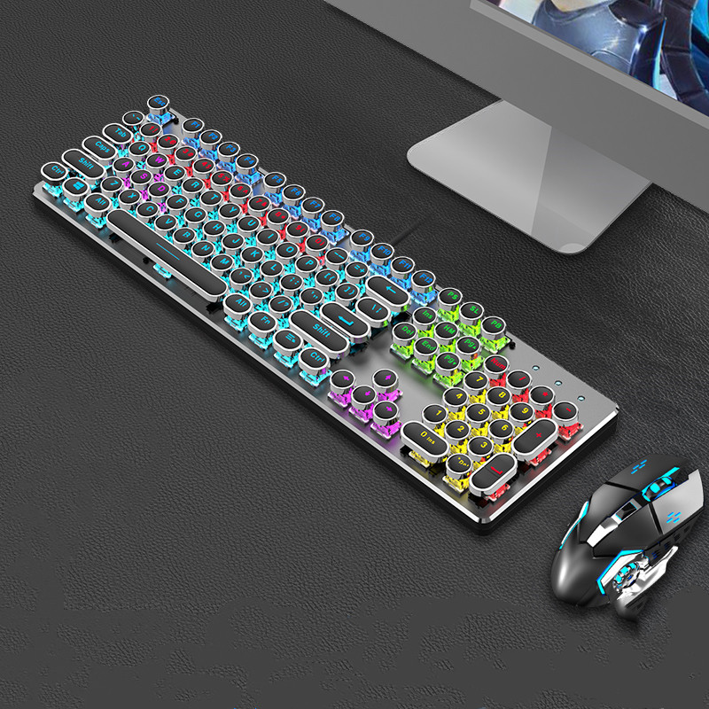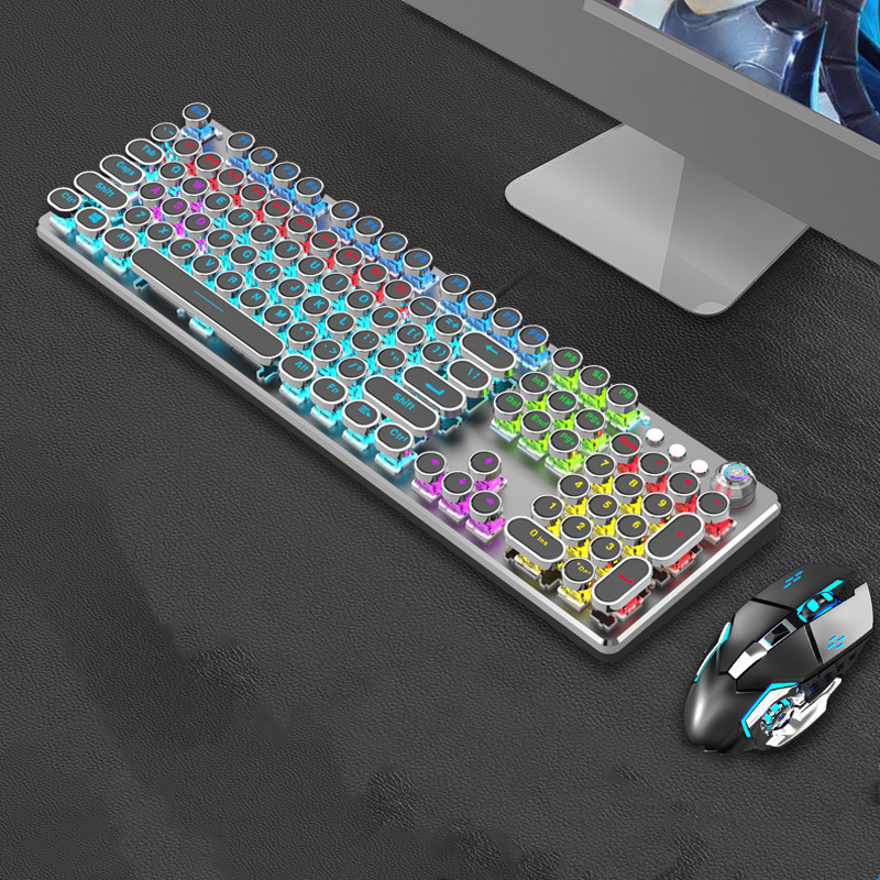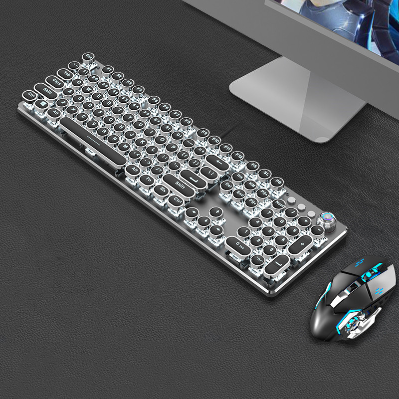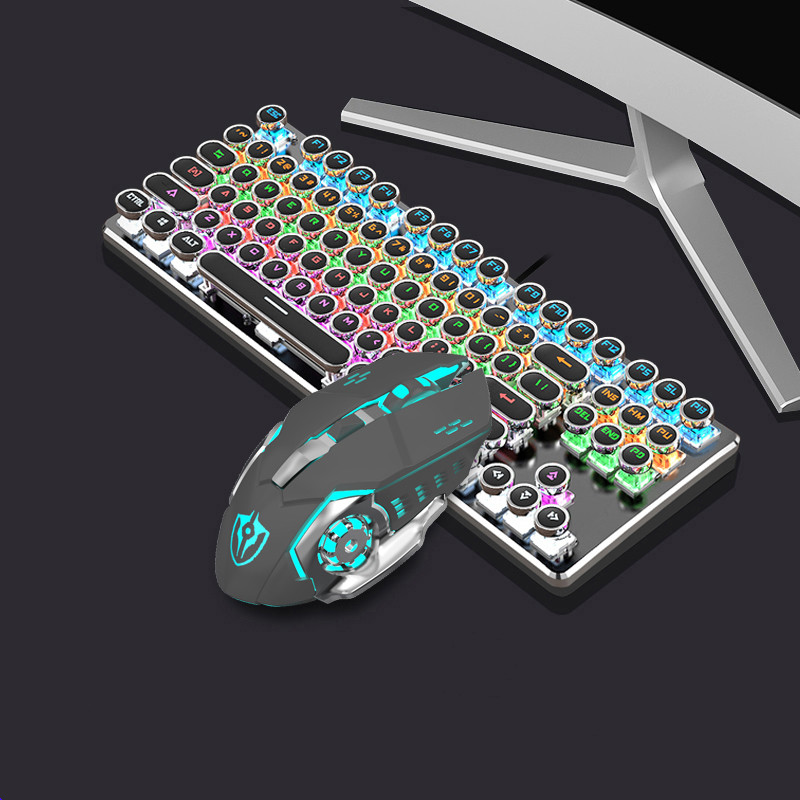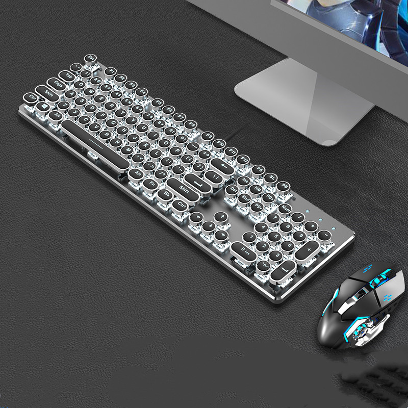 Steampunk Mechanical Keyboard And Mouse Set Retro 87-key Wired Laptop Desktop Office