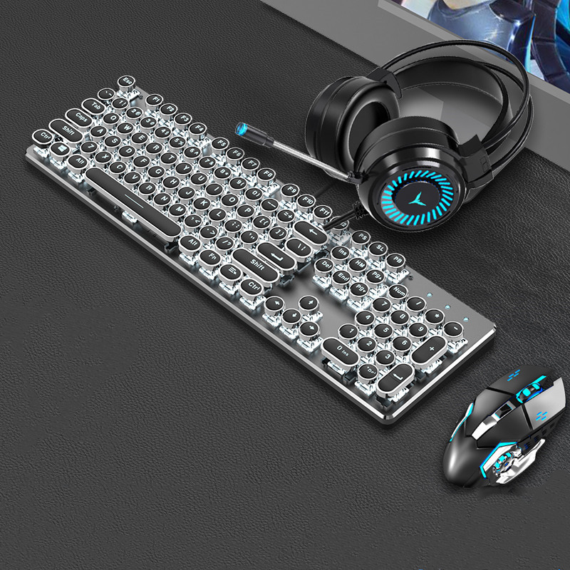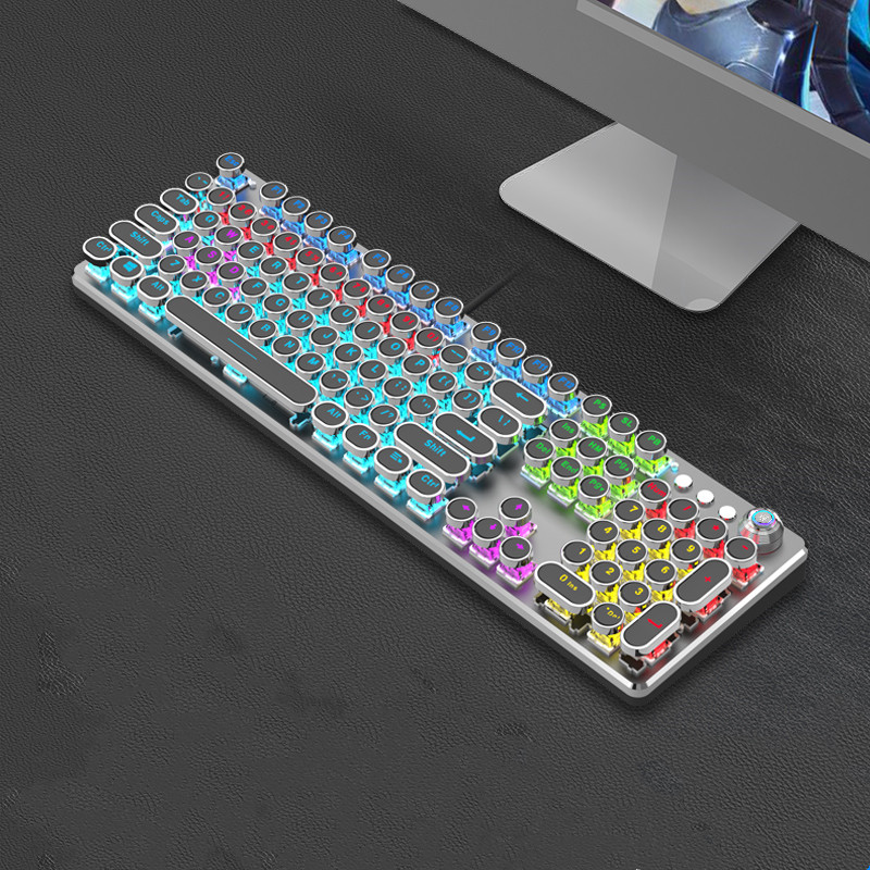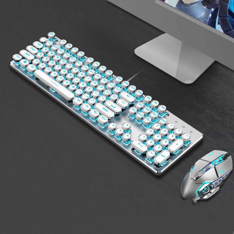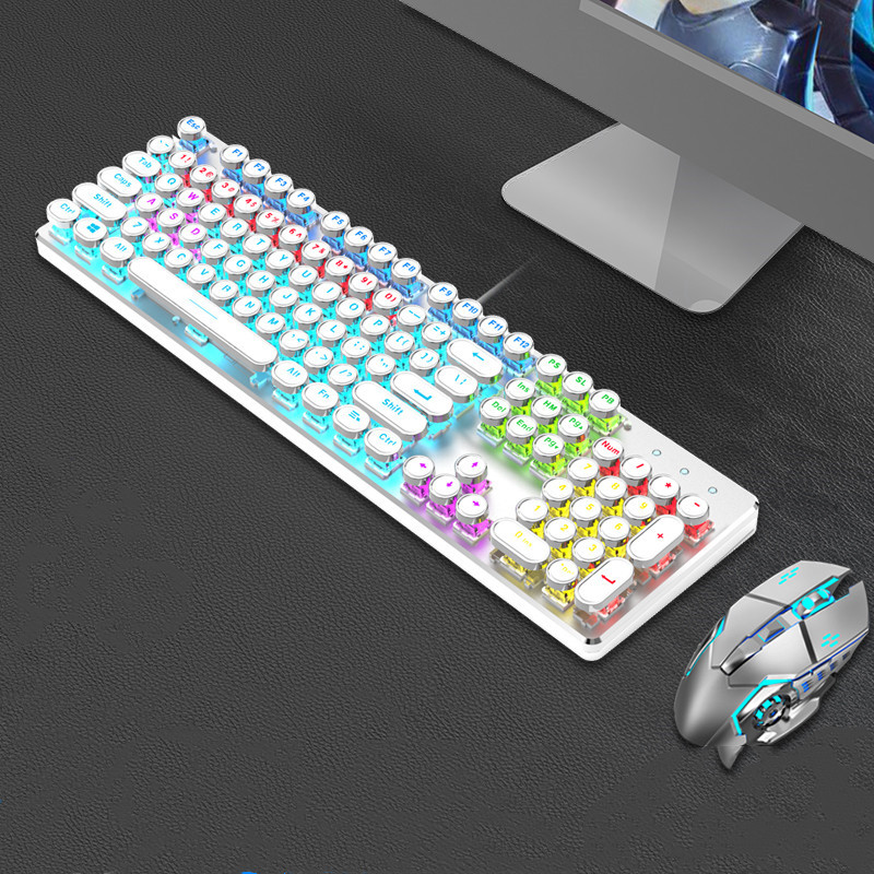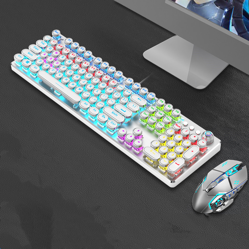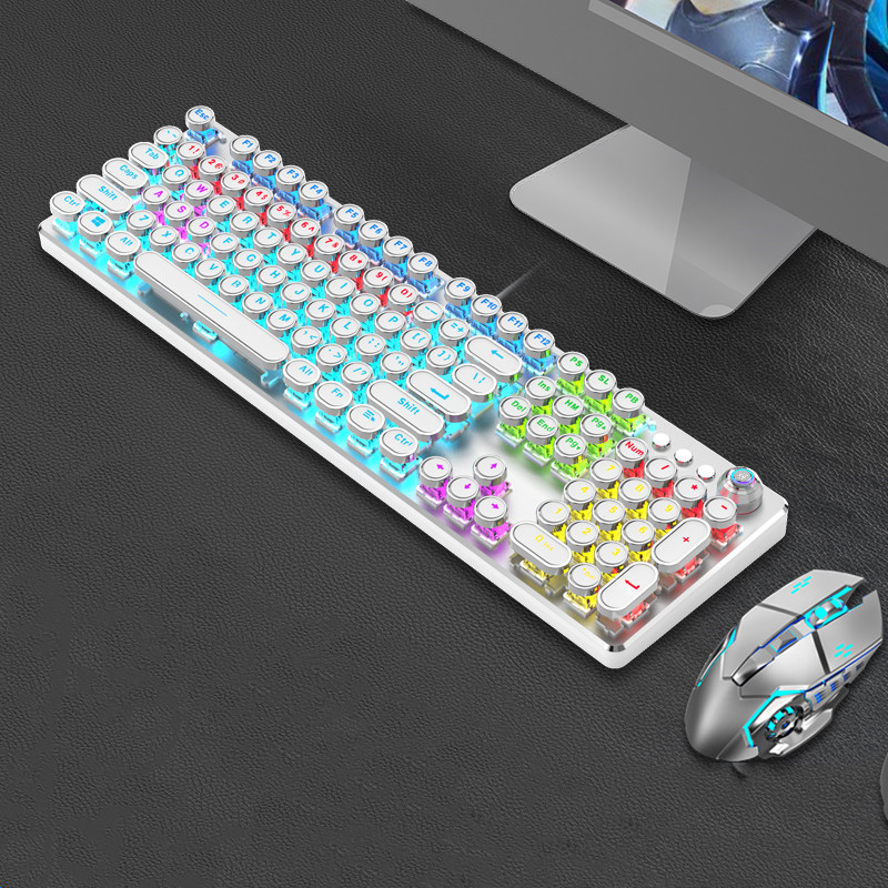 Steampunk Mechanical Keyboard And Mouse Set Retro 87-key Wired Laptop Desktop Office