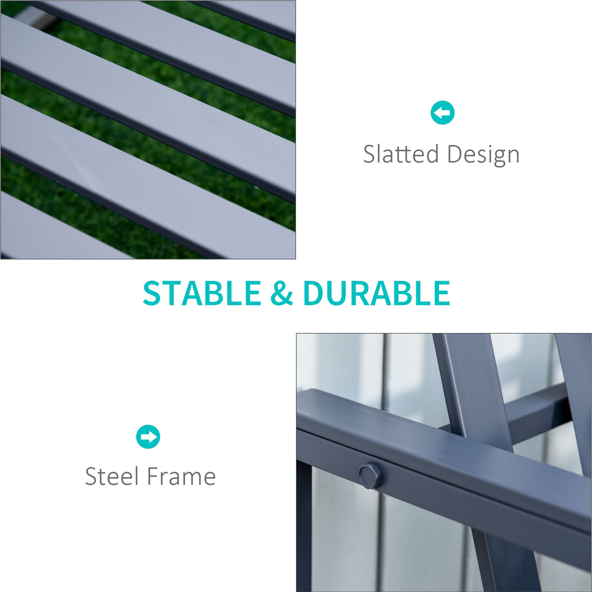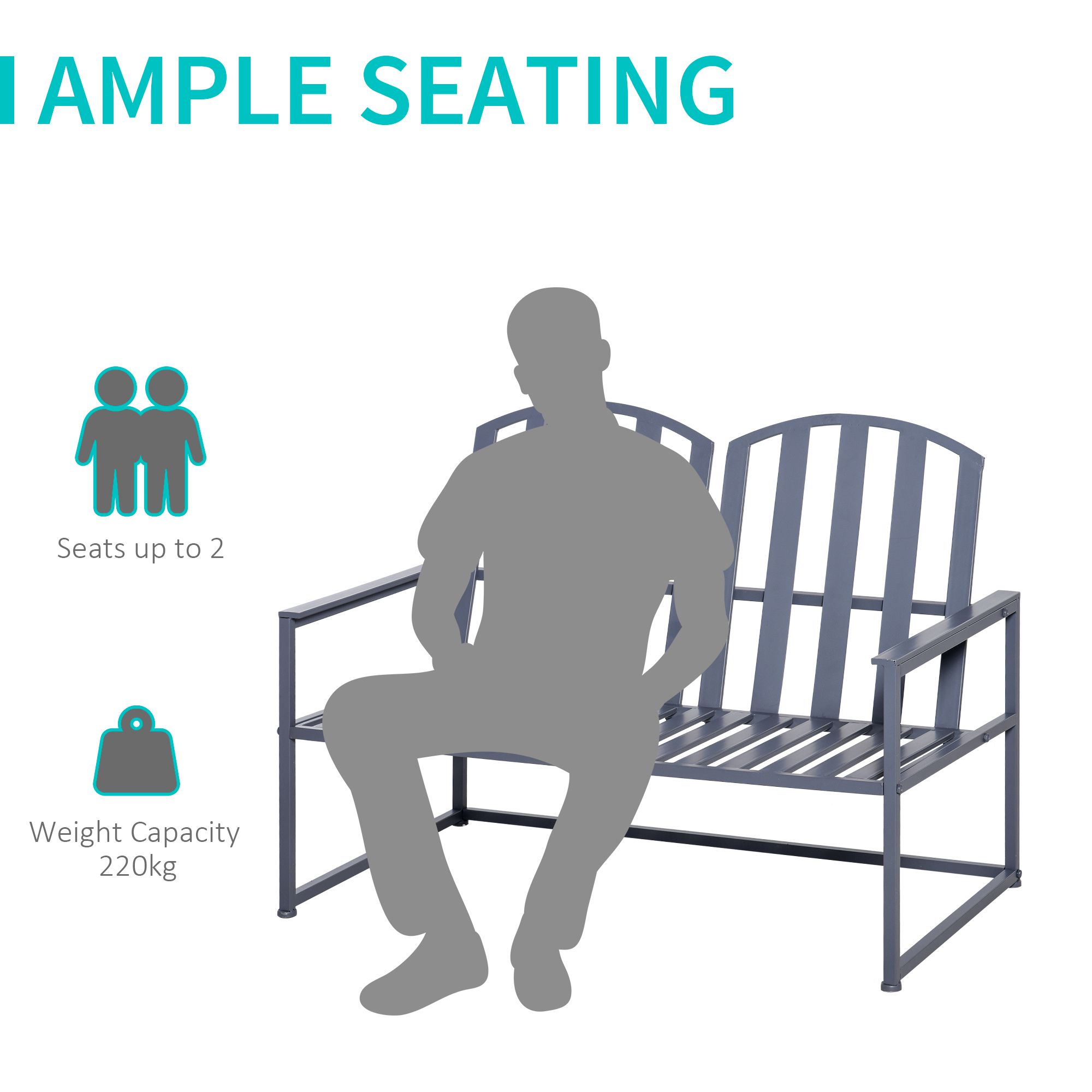 Complete garden and outdoor areas with this outside bench from . Made from metal, the structure of this 2 seater garden bench is sturdy and tough for daily use all-year round. Whilst it's pretty simple to look at, the line design on the back, combined with the grey colour, gives our garden bench seat some character so it stands out wherever you decide to place it. The tall back and armrests give your body support as you sit. Finished with a large balanced base for stability.