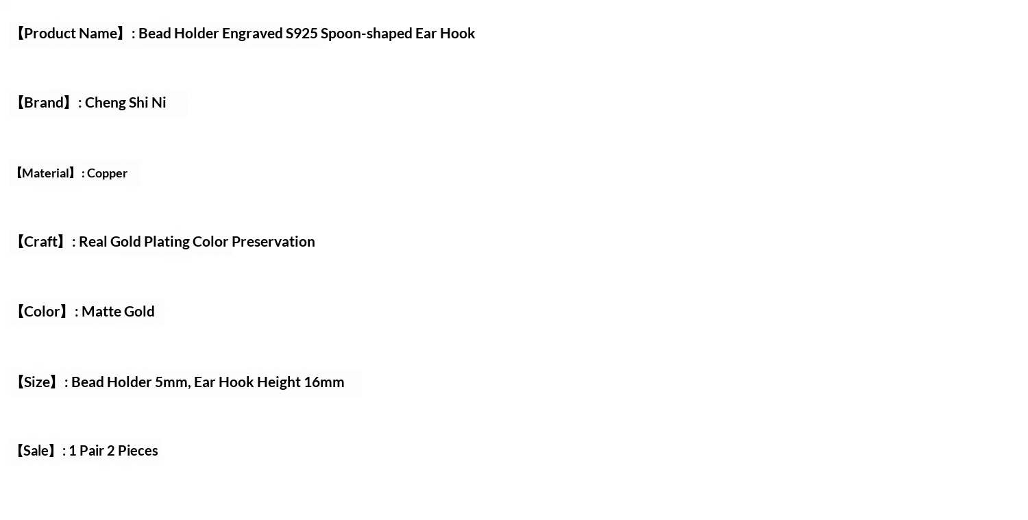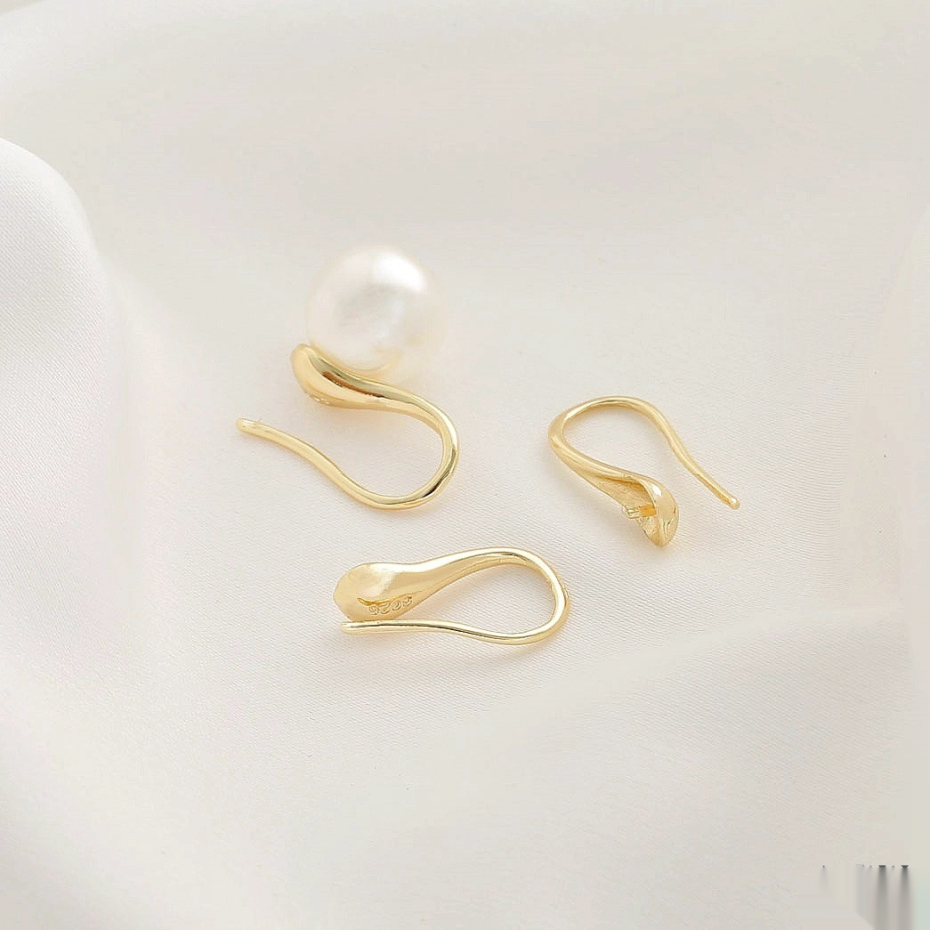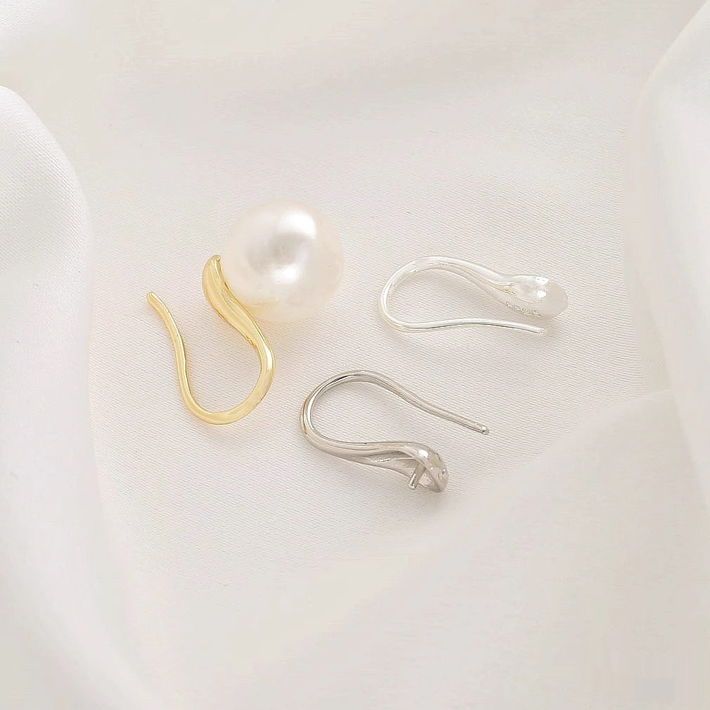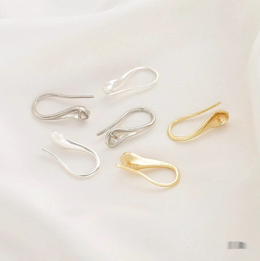Colors: (14k) S925-stamped bead-seat ear hooks, 1 pair (2 pieces); (silver) S925-stamped bead-seat ear hooks, 1 pair (2 pieces); (platinum gold) S925-stamped bead-seat ear hooks, 1 pair (2 pieces)