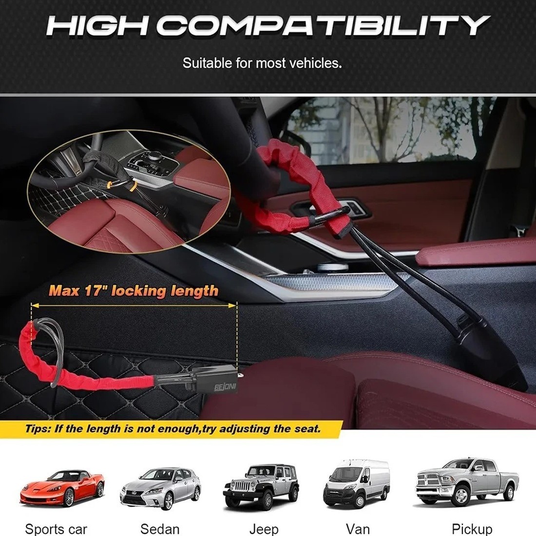 Safeguard your vehicle with a robust anti-theft solution designed for maximum resistance and interior-friendly use. The distance is used to limit the rotation of the steering wheel that secures both the steering wheel and seatbelt, creating a powerful barrier against theft.