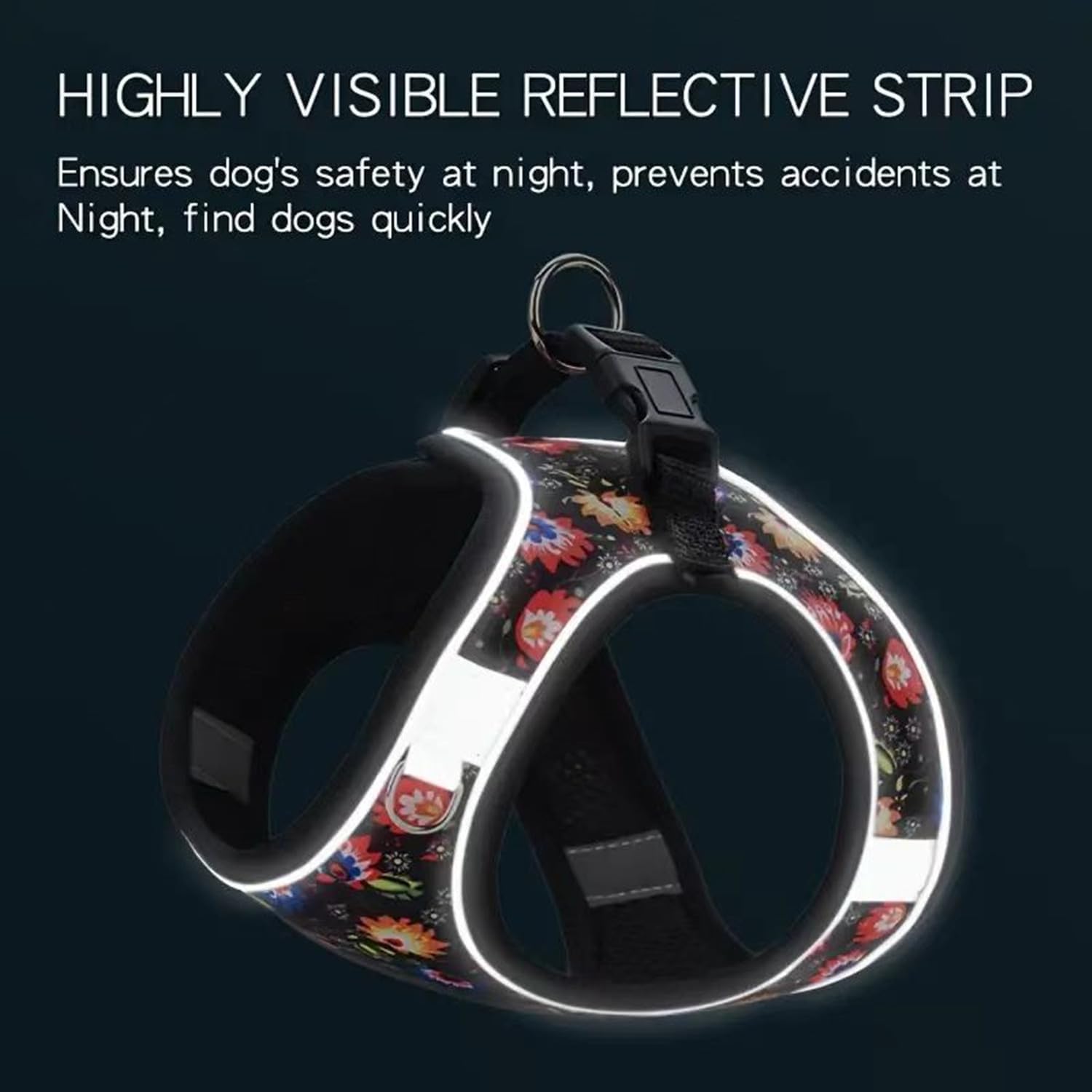 Step In Dog Harness No Pull Flower Adjustable Soft Mesh Padded Reflective Pet Vest Harness And Leash Set For Small Medium Dogs