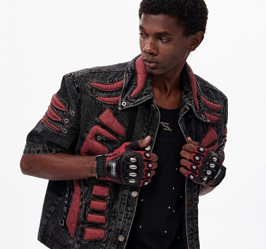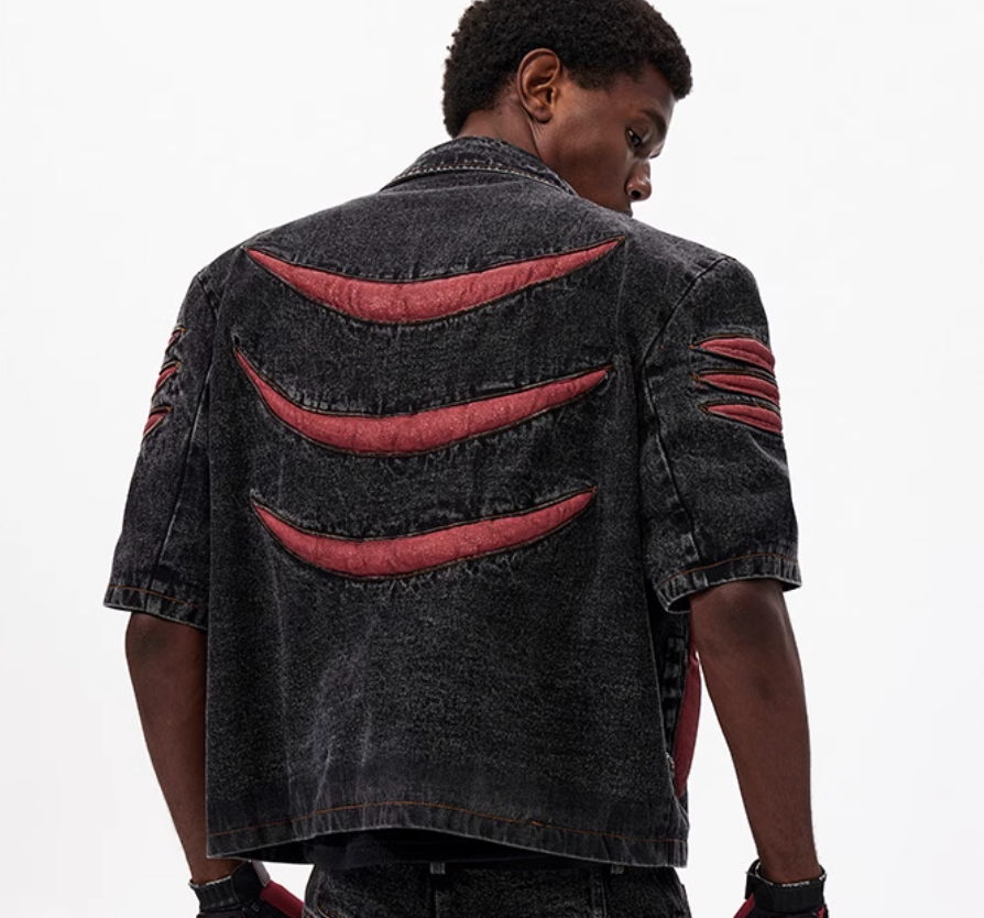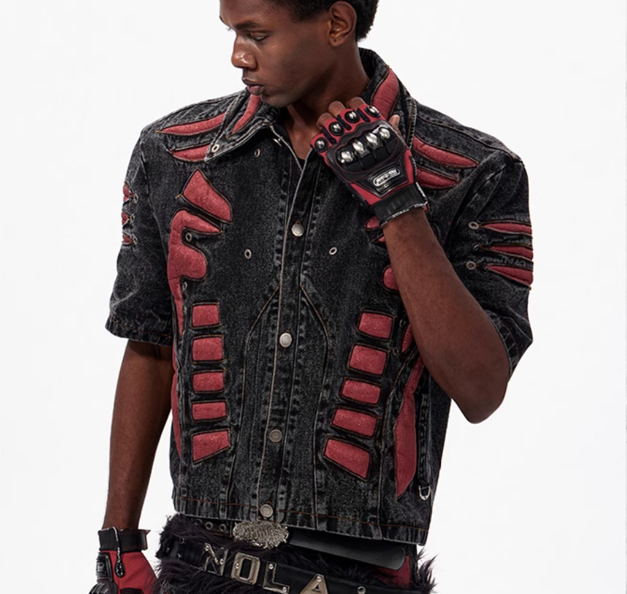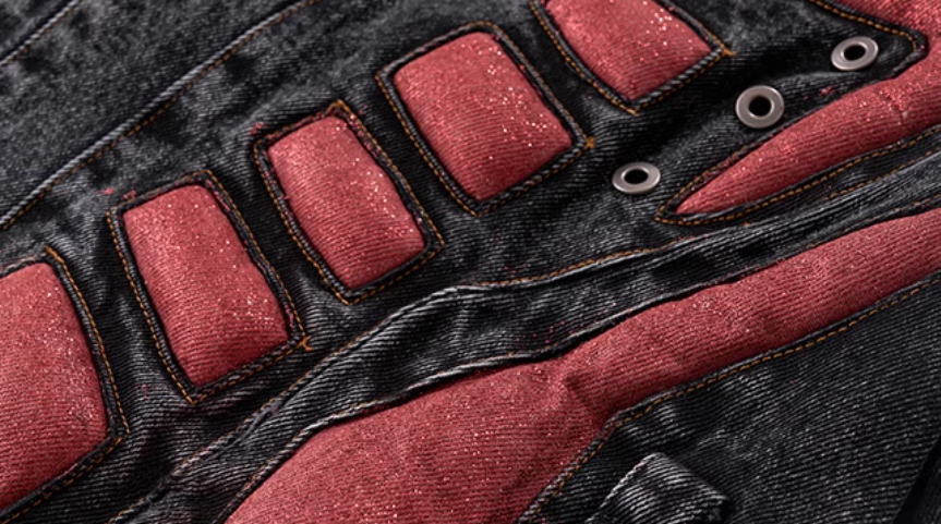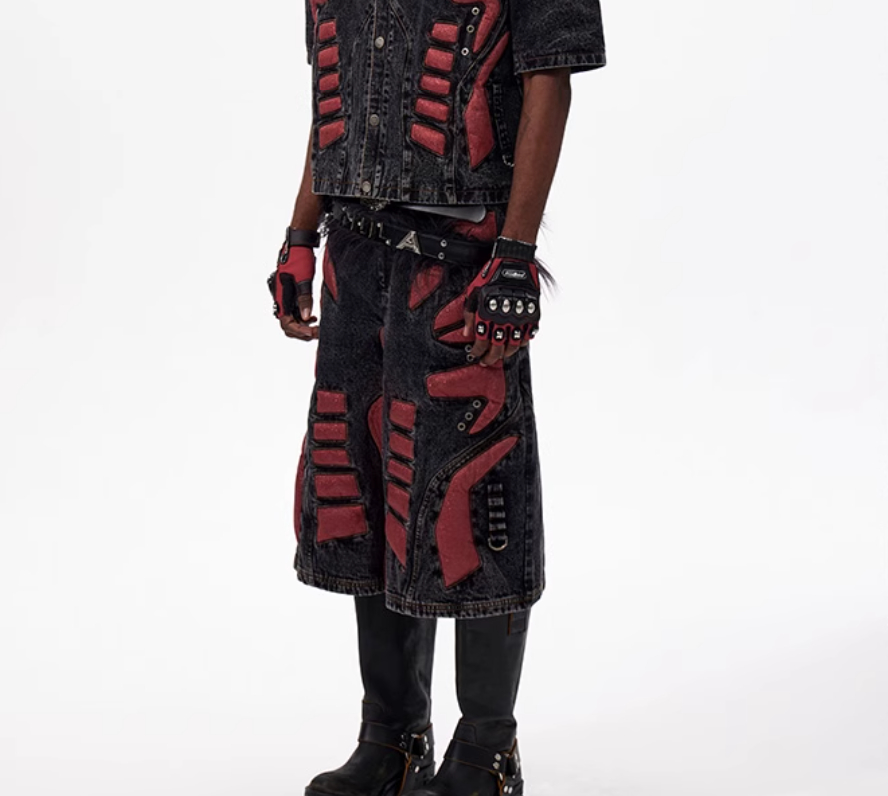 Colour: Black and red top, black and red trousers