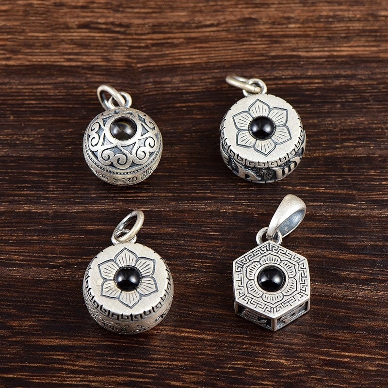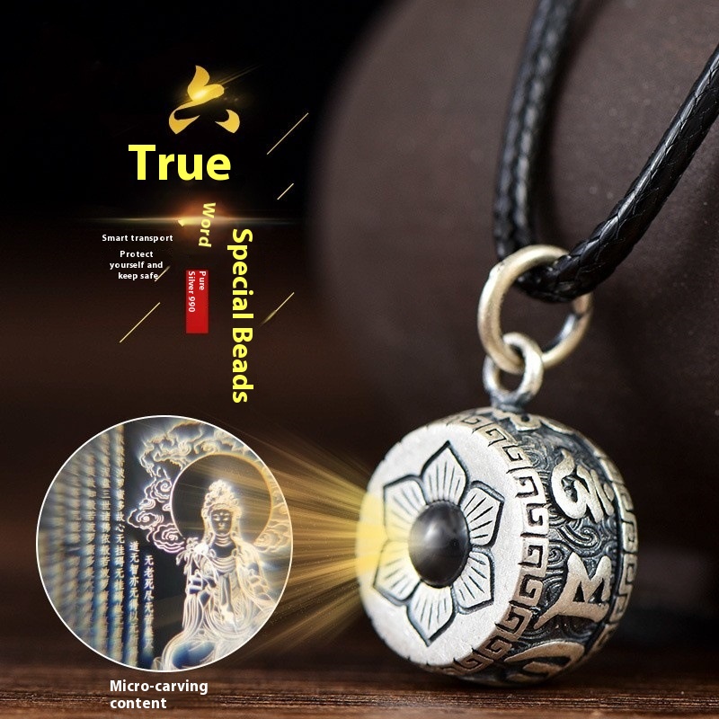 Sterling Silver 990 Six Words Mantra Lucky Beads Pendant