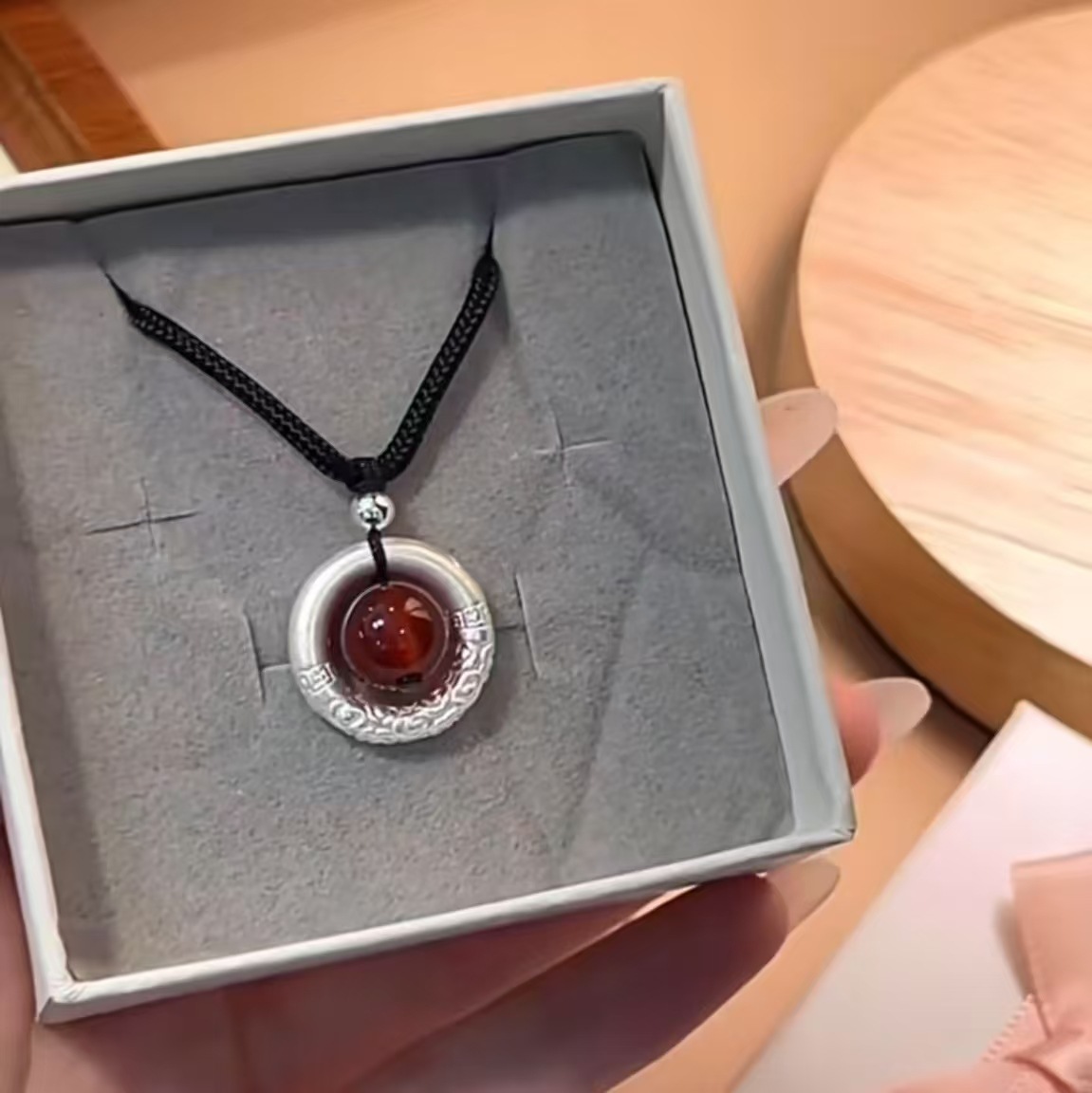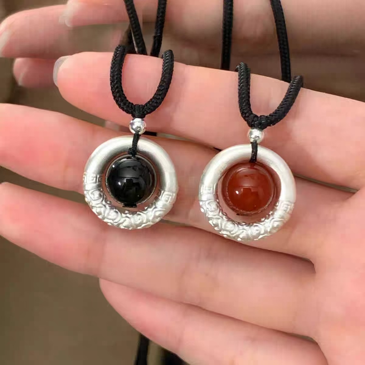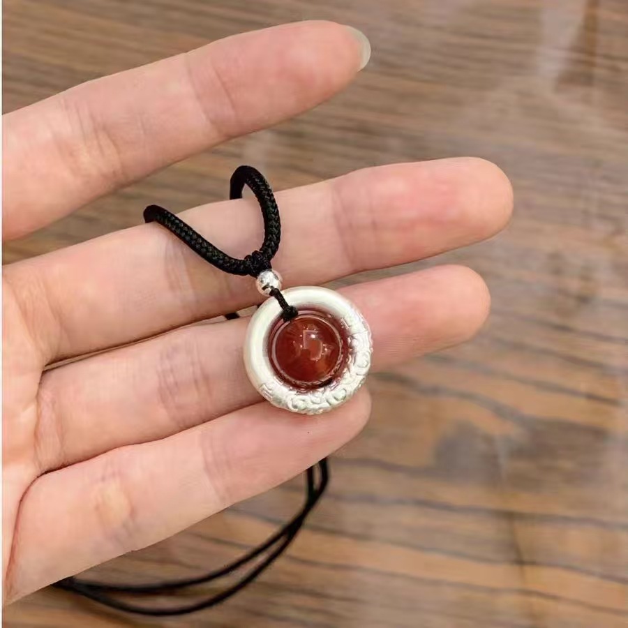 Product information:Type: pendant Color: Peace buckle black agate, peace buckle red agate Material: Silver Popular elements: Xiangyun