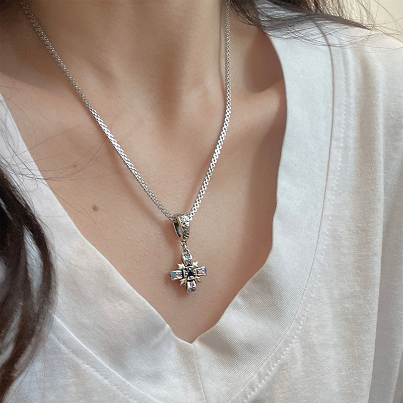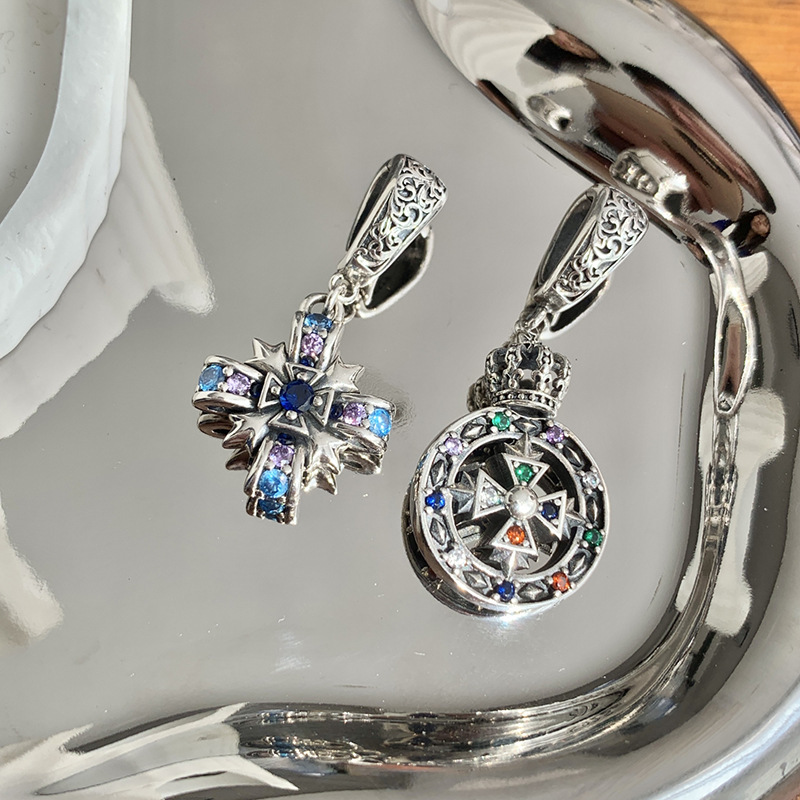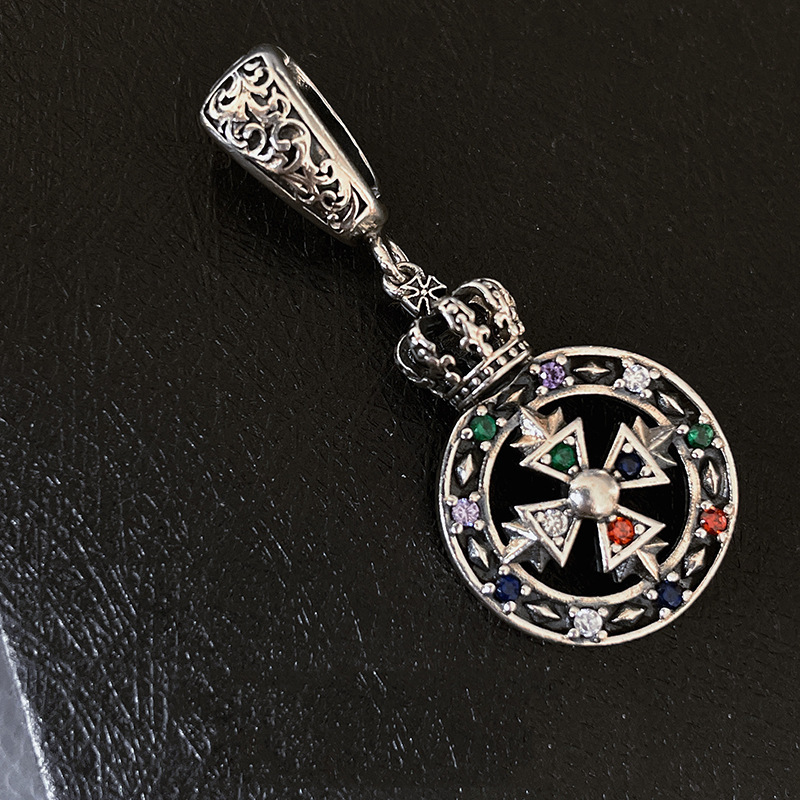 Color: D767 Retro Micro-inlaid Cross Pendant (without chain), D768 Vintage Diamond Crown Circle Pendant (without chain), D756 Retro Crown with Chain (without pendant)
