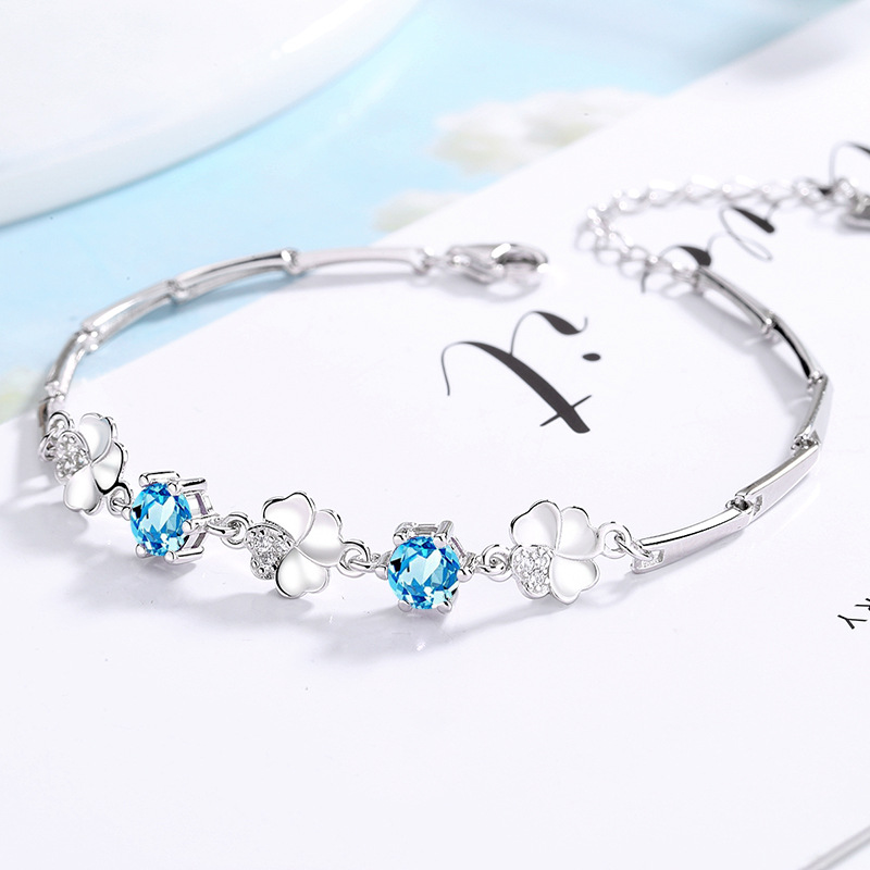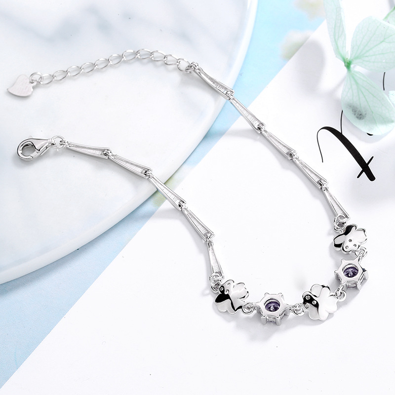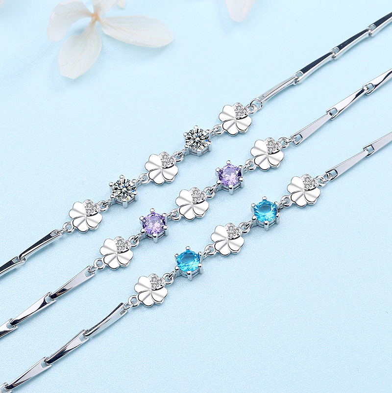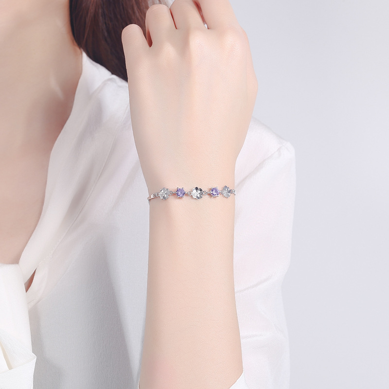 Material: silverType: BraceletStyle: Women'sModeling: FlowersInlay material: sterling silver inlaid with gemsQuality of precious metal: S925Color: white diamond, purple diamond, blue diamondPurity: 925 silver