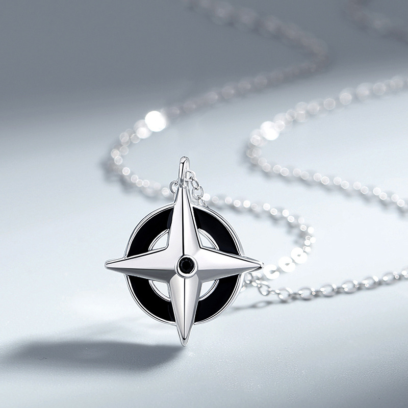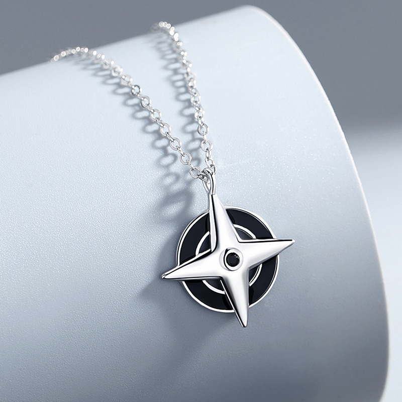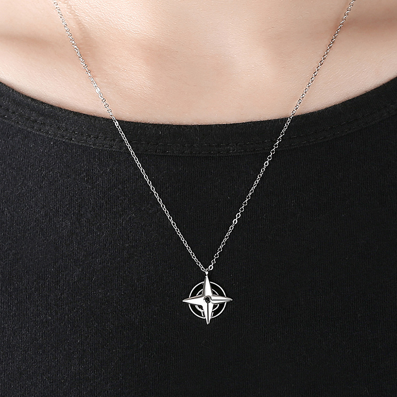 Sterling Silver Cross Necklace Men's Trendy Hip Hop Japanese Pendant