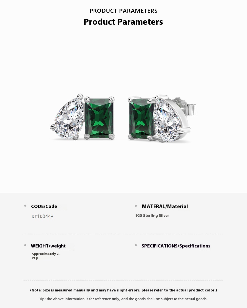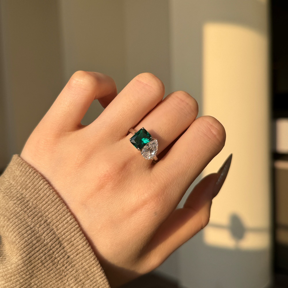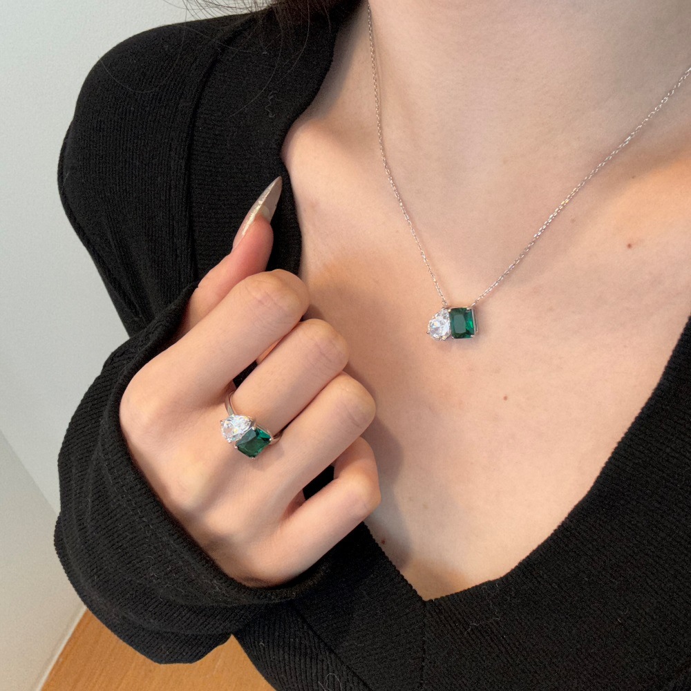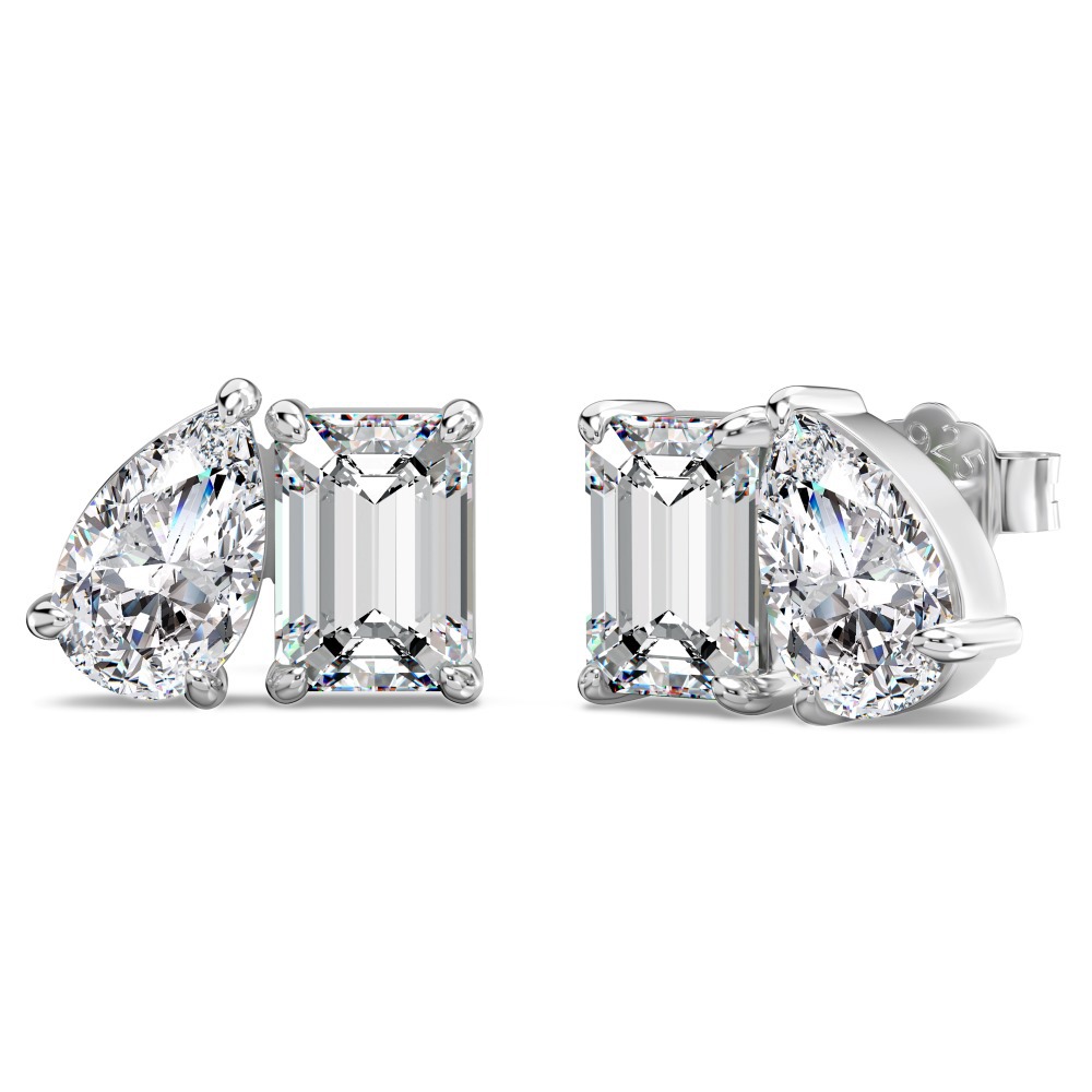 Sterling Silver Emerald Square Drop Zircon Stud Earrings