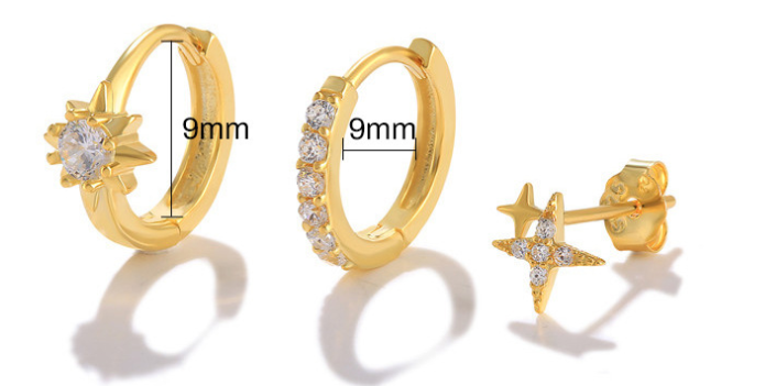 Color: set of 3 gold-white diamonds, set of 3 gold-black diamonds, set of 3 gold-green pine diamonds.