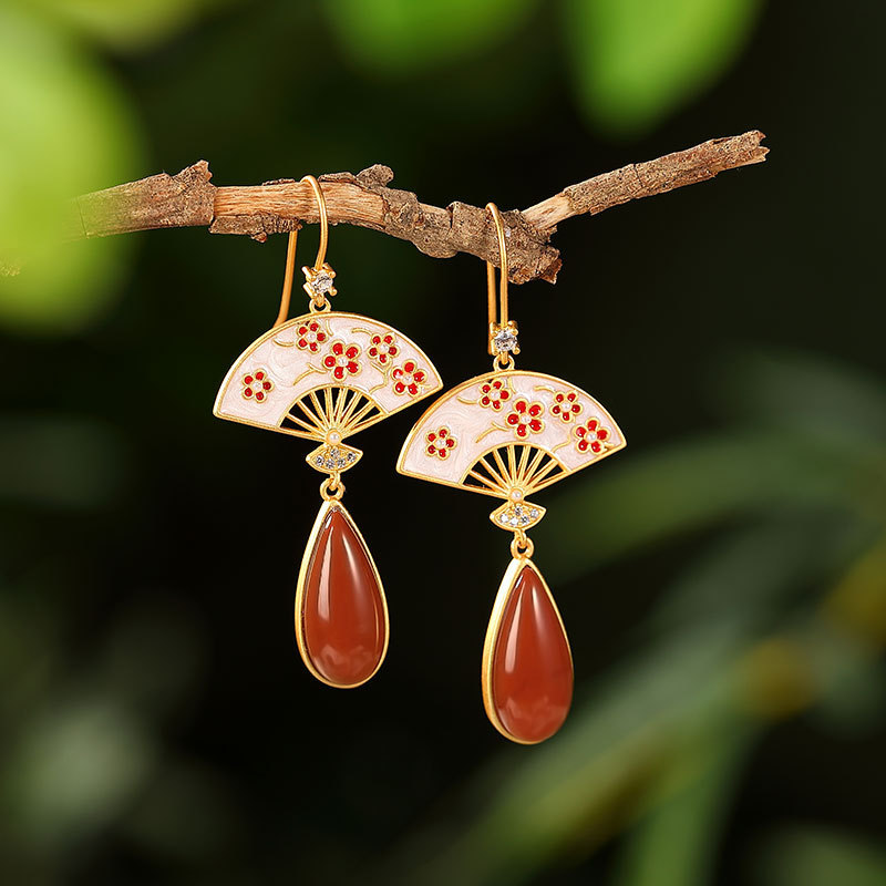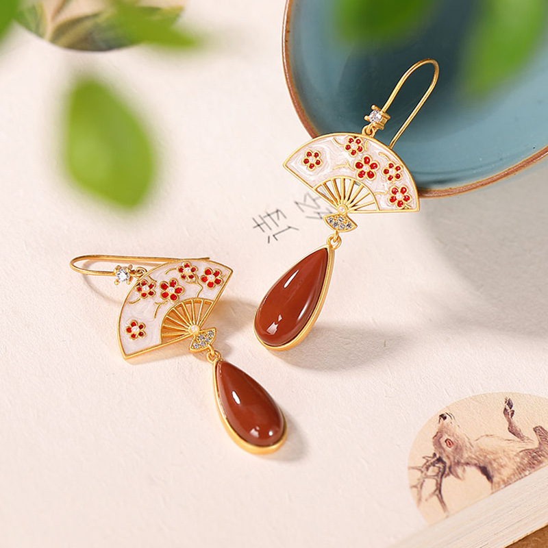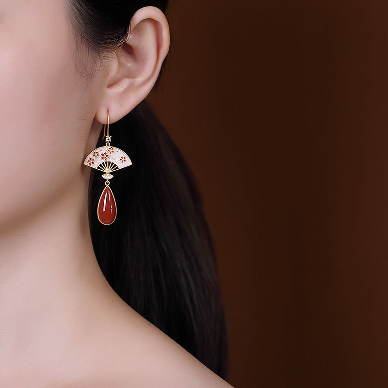 Product information:Color: South red scallop earrings Material: Copper Style: Chinese style