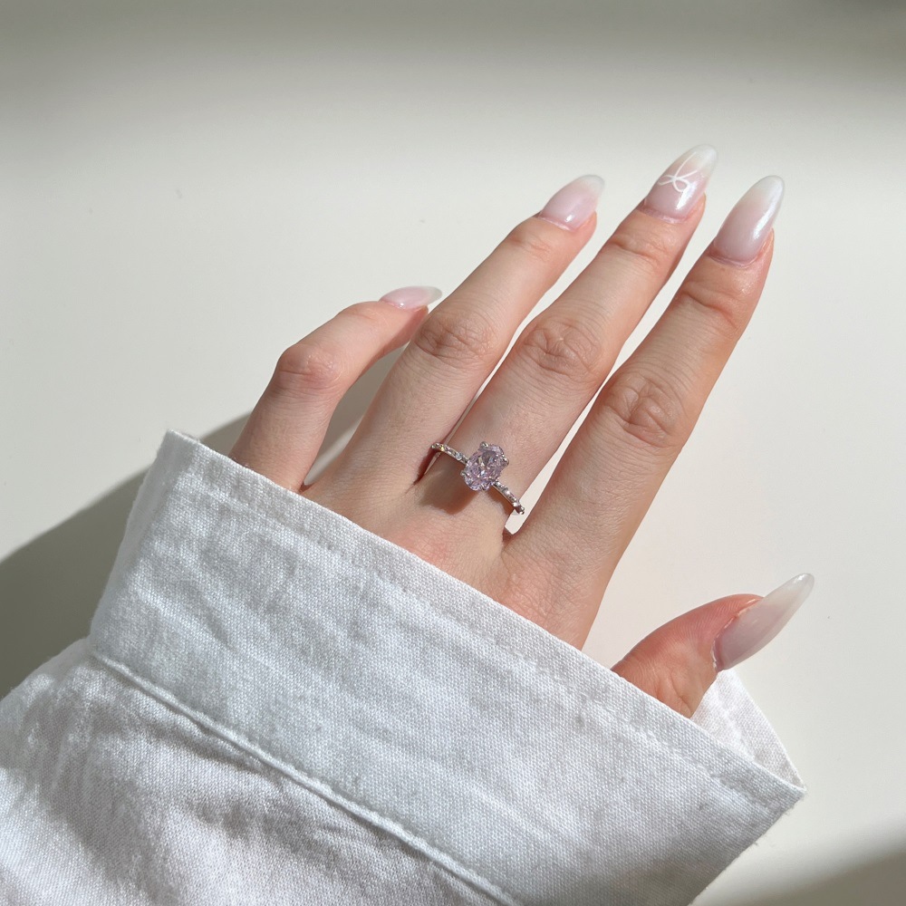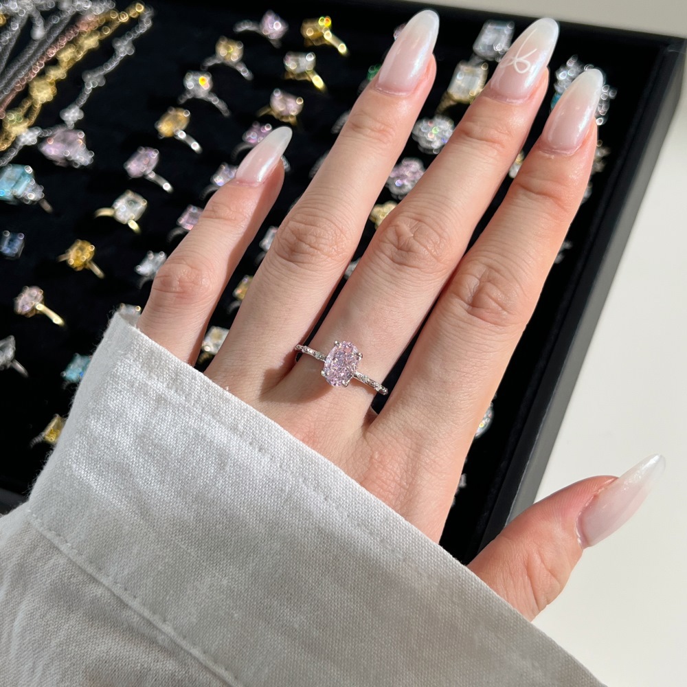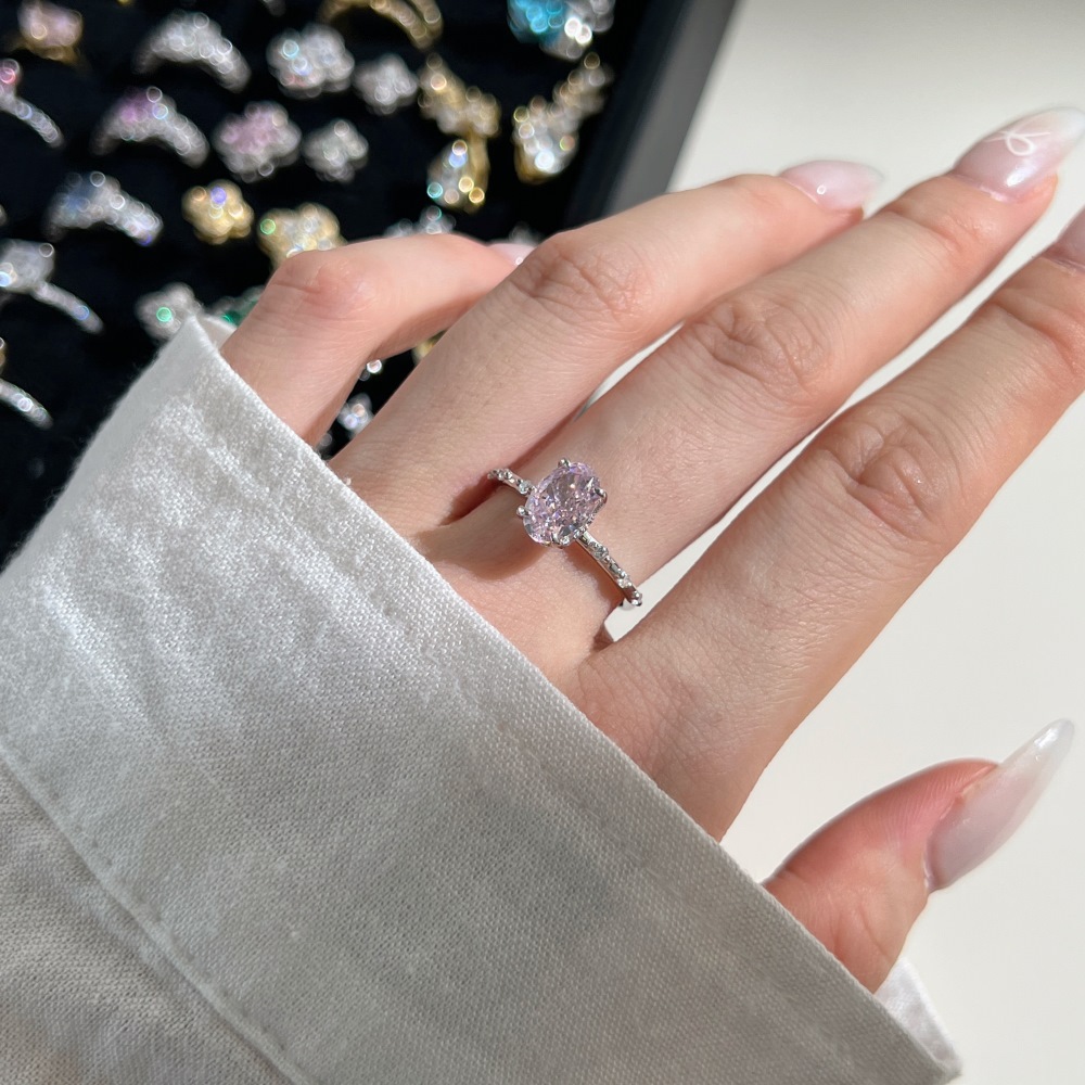 Sterling Silver High Carbon Rhinestone Ring Women