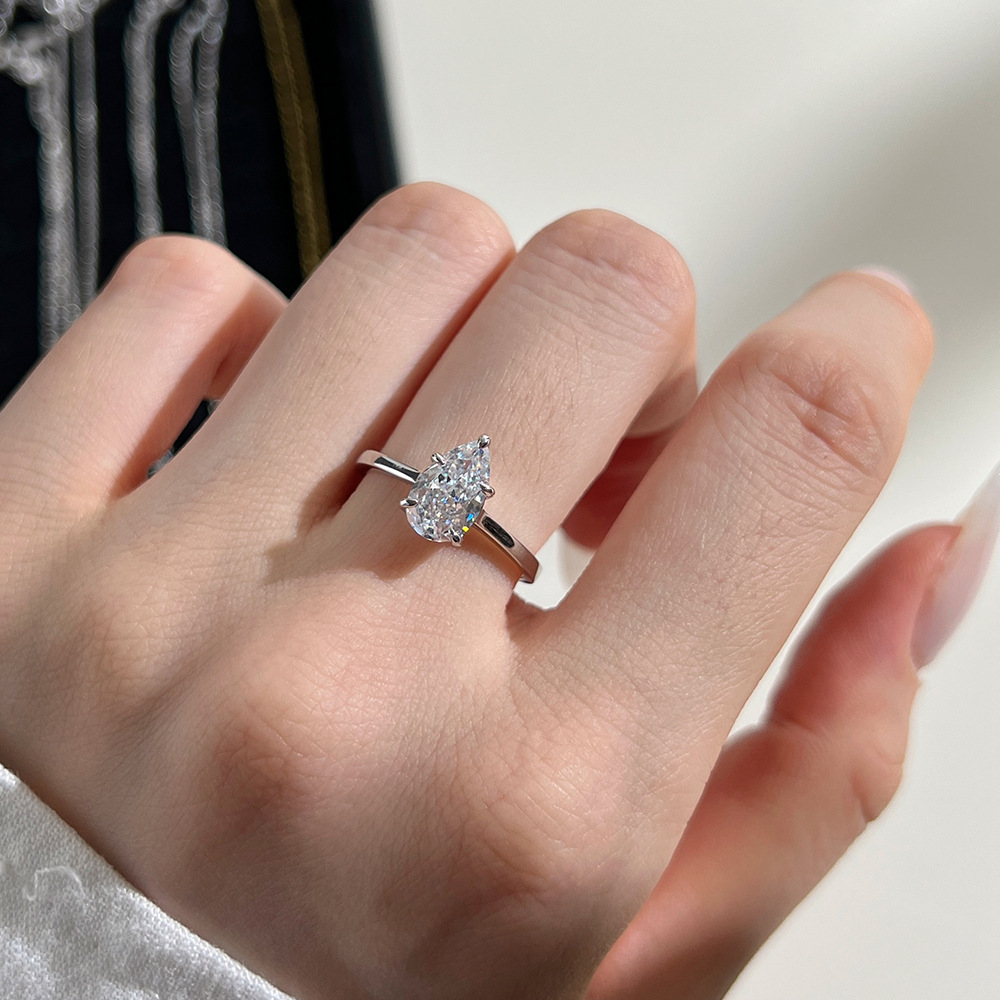 Sterling Silver High-grade Pear-shaped Zircon Inlaid Exquisite Closed Ring